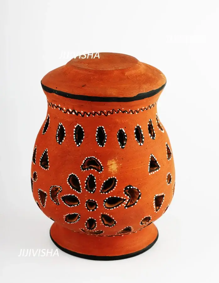 Kutch Handcrafted Terracotta Bulb Lamp – Perforated Clay Lantern With Tribal Art