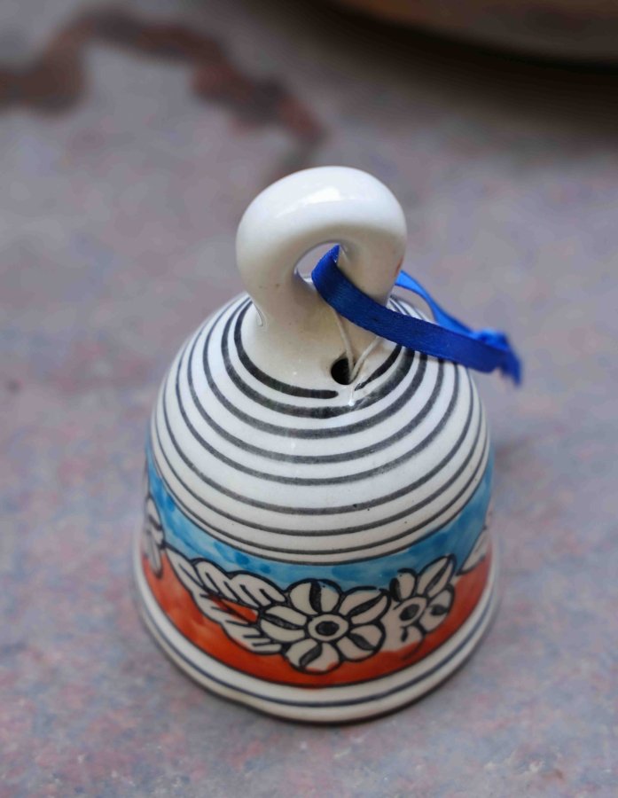 Kutch Handpainted Ceramic Floral Bell with Colorful Detailing