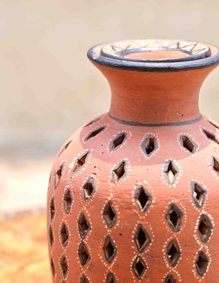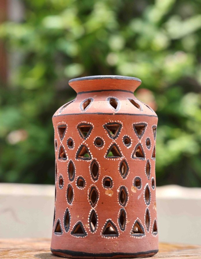Kutch Handcrafted Terracotta Lamp With Diamond Cutouts