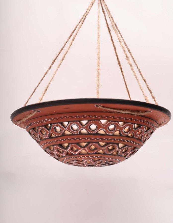Kutch Handcrafted Terracotta Hanging Lamp With Tribal Art