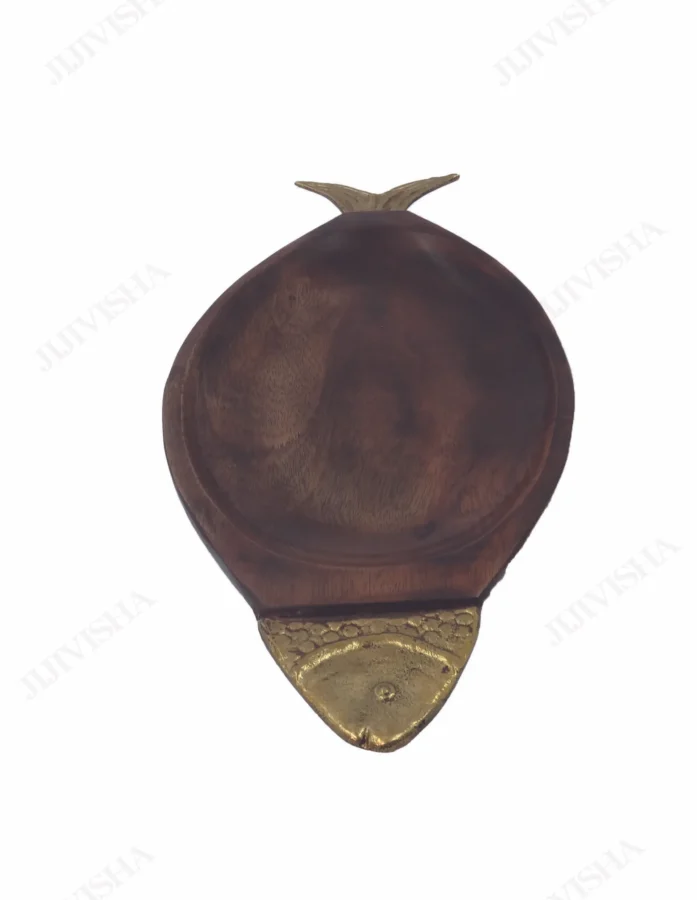 Marine Elegance Wooden Fish Serving Platter with Dokra Art