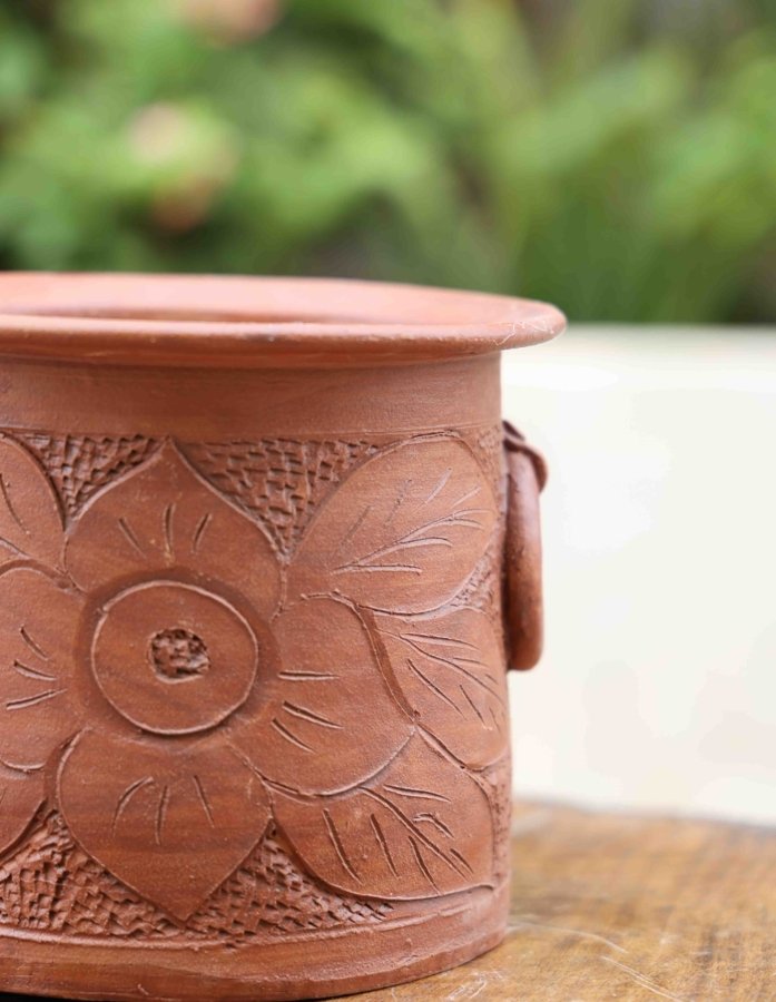 Kutch Handcrafted Terracotta Floral Carved Planter Pot
