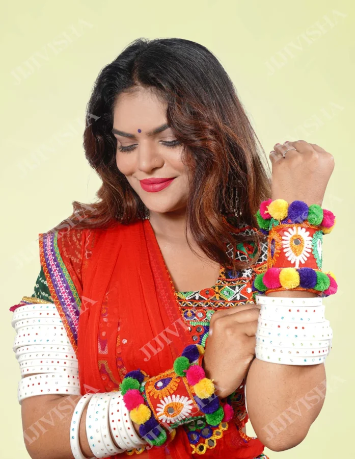 Handcrafted Mirror Embellished Yellow Kutch Embroidery Bangles