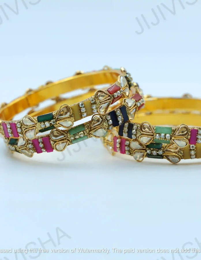 Rajwadi Multicolour Laakh Bangles With Kundan Work