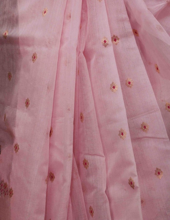 Grey Kota Cotton Saree With Real Gold And Silver Zari