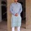 Azure Waves Ivory Block Print Cotton Kurta
