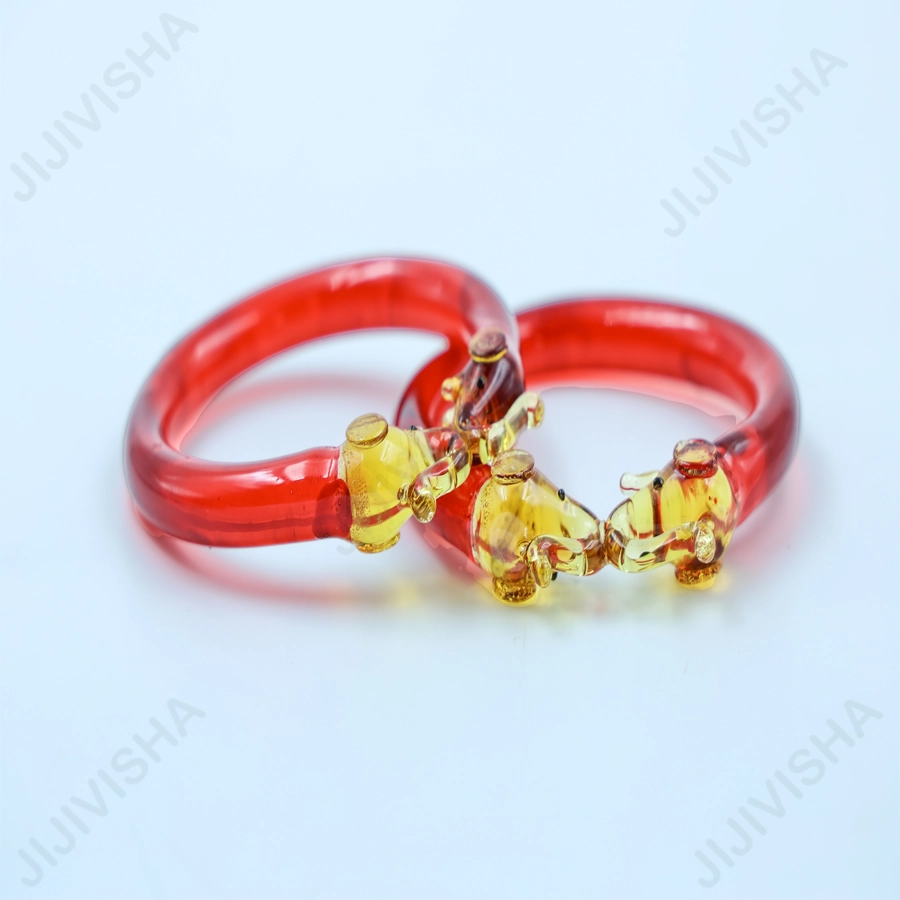 - A crystal glass bangle with elephant ends is a unique and beautiful piece of handcrafted jewelry. The bangle is made using high-quality glass, which is known for it's exceptional brilliance and clarity. The golden elephant ends of the bangle are crafted using high quality glass to create intricate designs. The color of the bangle complements the sparkling crystals and the colorful enamel elephant ends, making it a versatile accessory that can be worn with a variety of outfits. The elephant is a symbol of strength, power, and wisdom in many cultures, making this bangle a perfect choice for anyone looking to add a touch of meaning and symbolism to their jewelry collection.