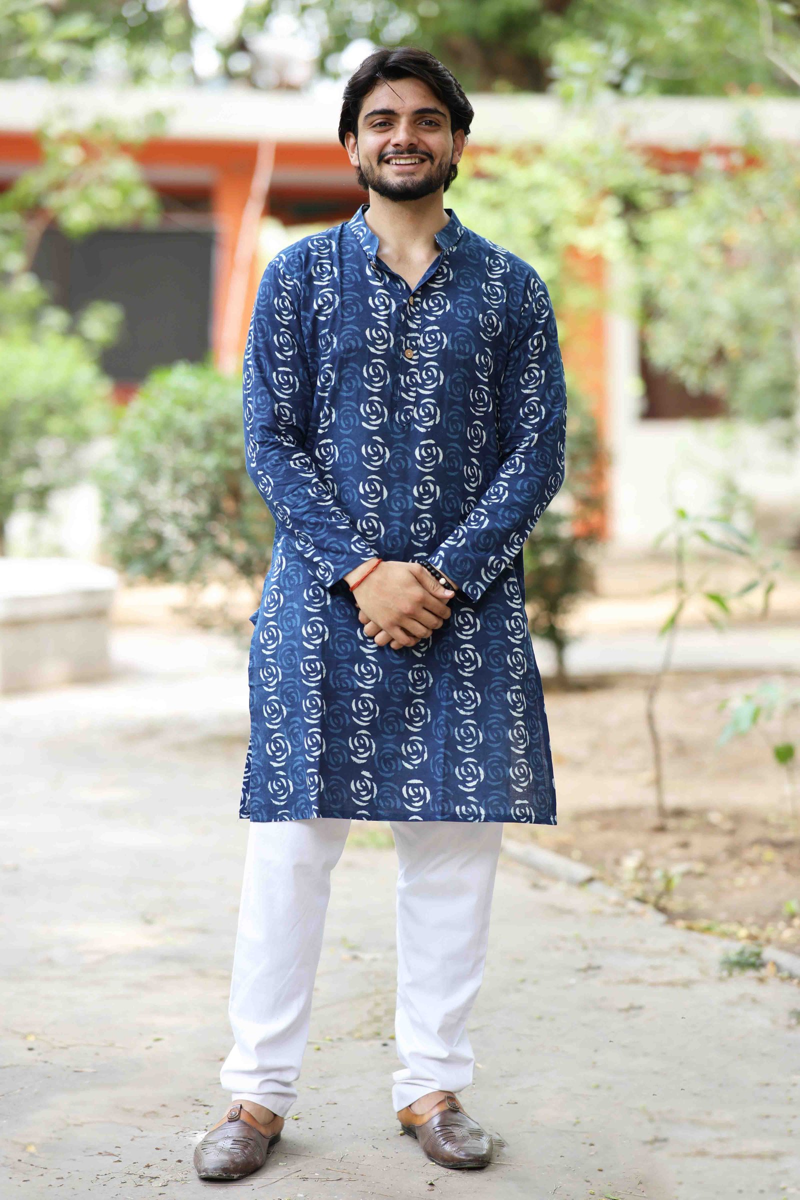 Be the first to review “Blue Kurta – Rose Hand Block Print”