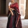 • Unveiling the “Bodh Bandha” Dual Coloured Sambalpuri Pata Ikkat Saree, a harmonious symphony of rich brown and fiery red hues, meticulously woven to capture the essence of tradition and modernity in a single drape. The rich, earthy brown backdrop symbolizes stability and soil’s warmth, while the lively red dances across the saree, embodying vibrant energy and the pulse of life. Draping this saree immerses you in Sambalpuri craftsmanship, woven through generations of artisans. The Bodh Bandha design, inspired by life’s intricate ties, echoes the interconnectedness of all.