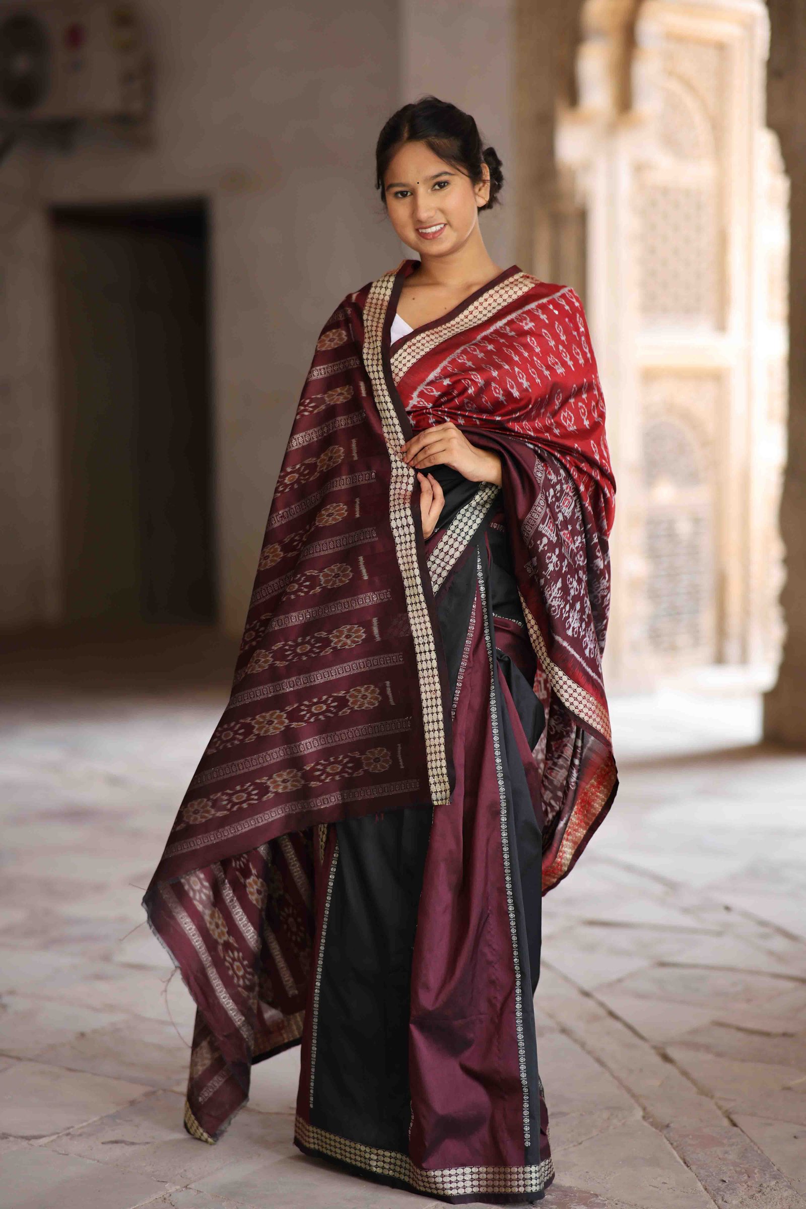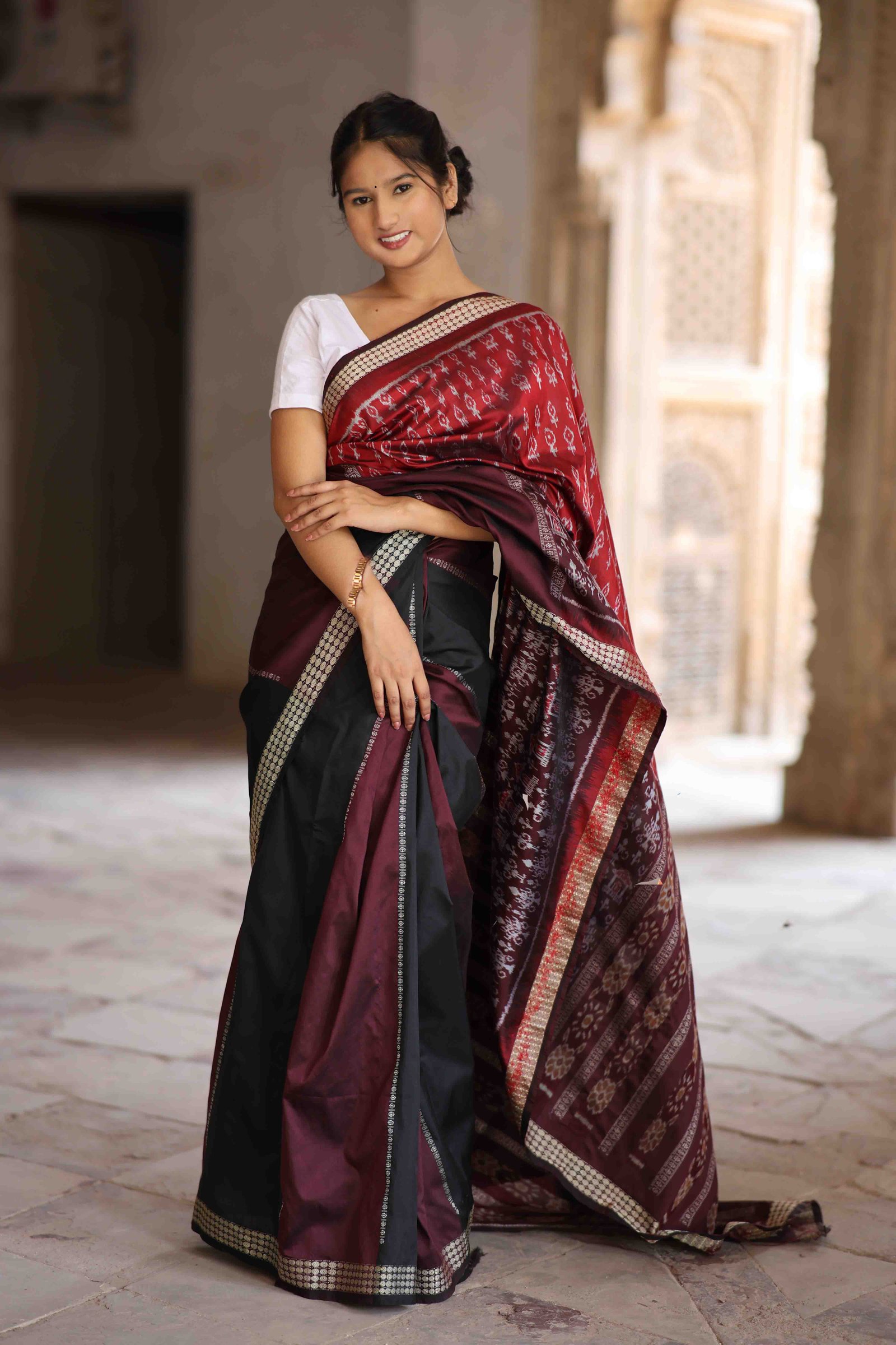 Embers of Passion: Bodh Bandha Dual Coloured Sambalpuri Pata Ikkat Saree