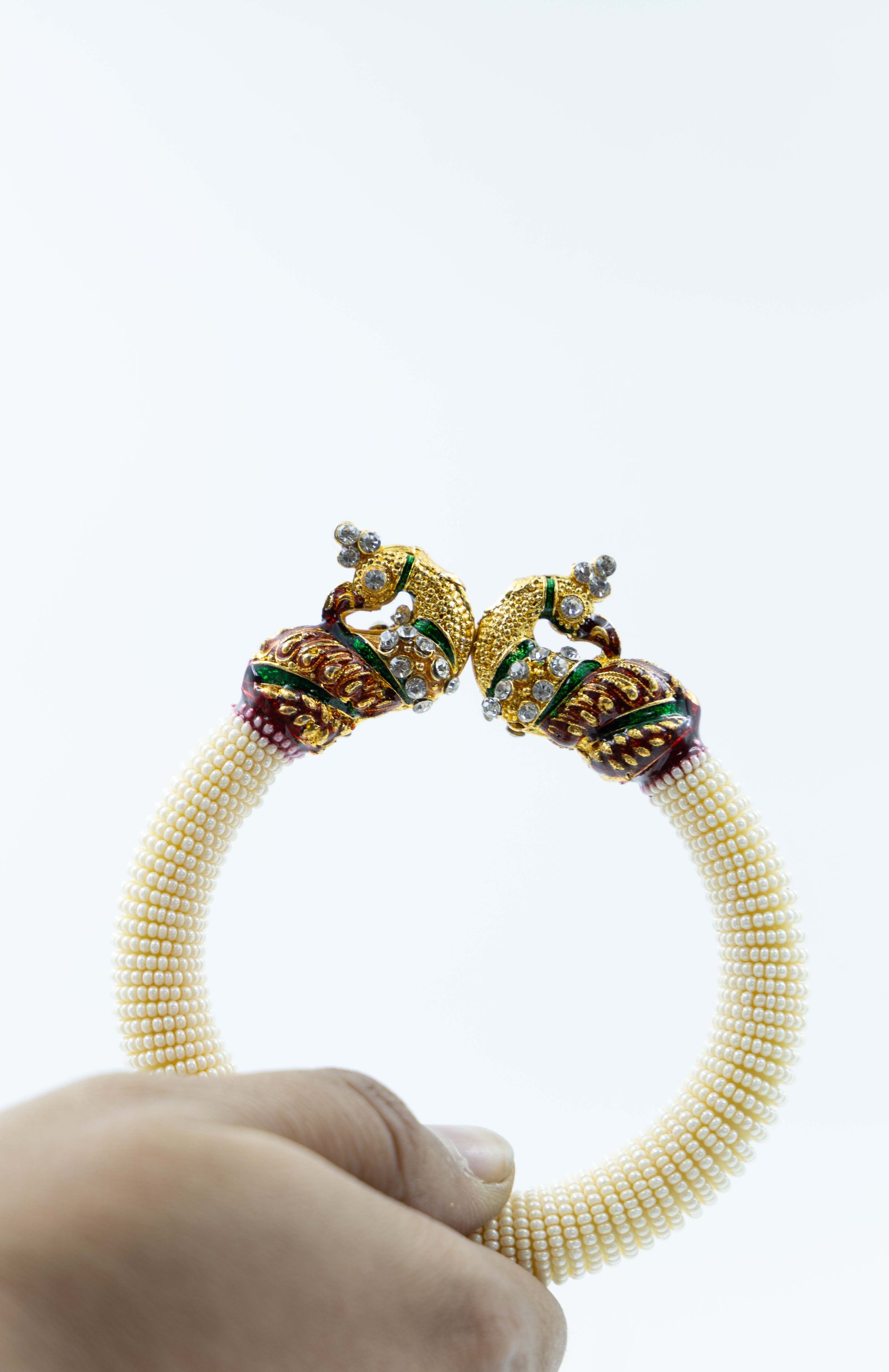 Crystal White Bangles with Elephant Ends
