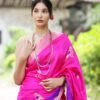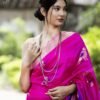 Dark Pink Chanderi Silk Saree with Sparrow Motifs
