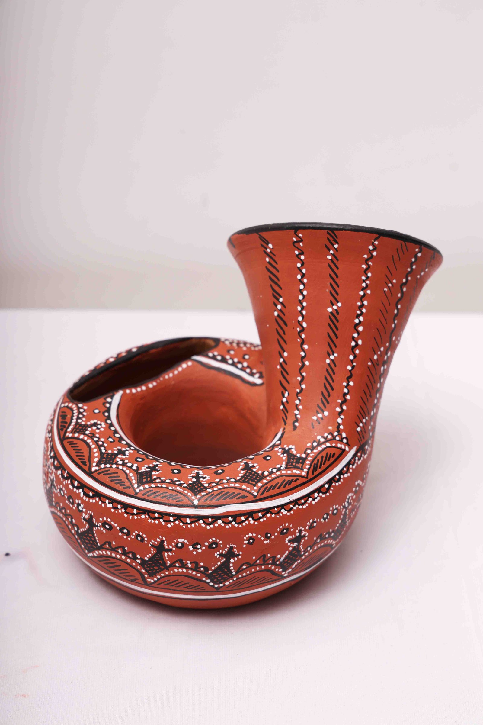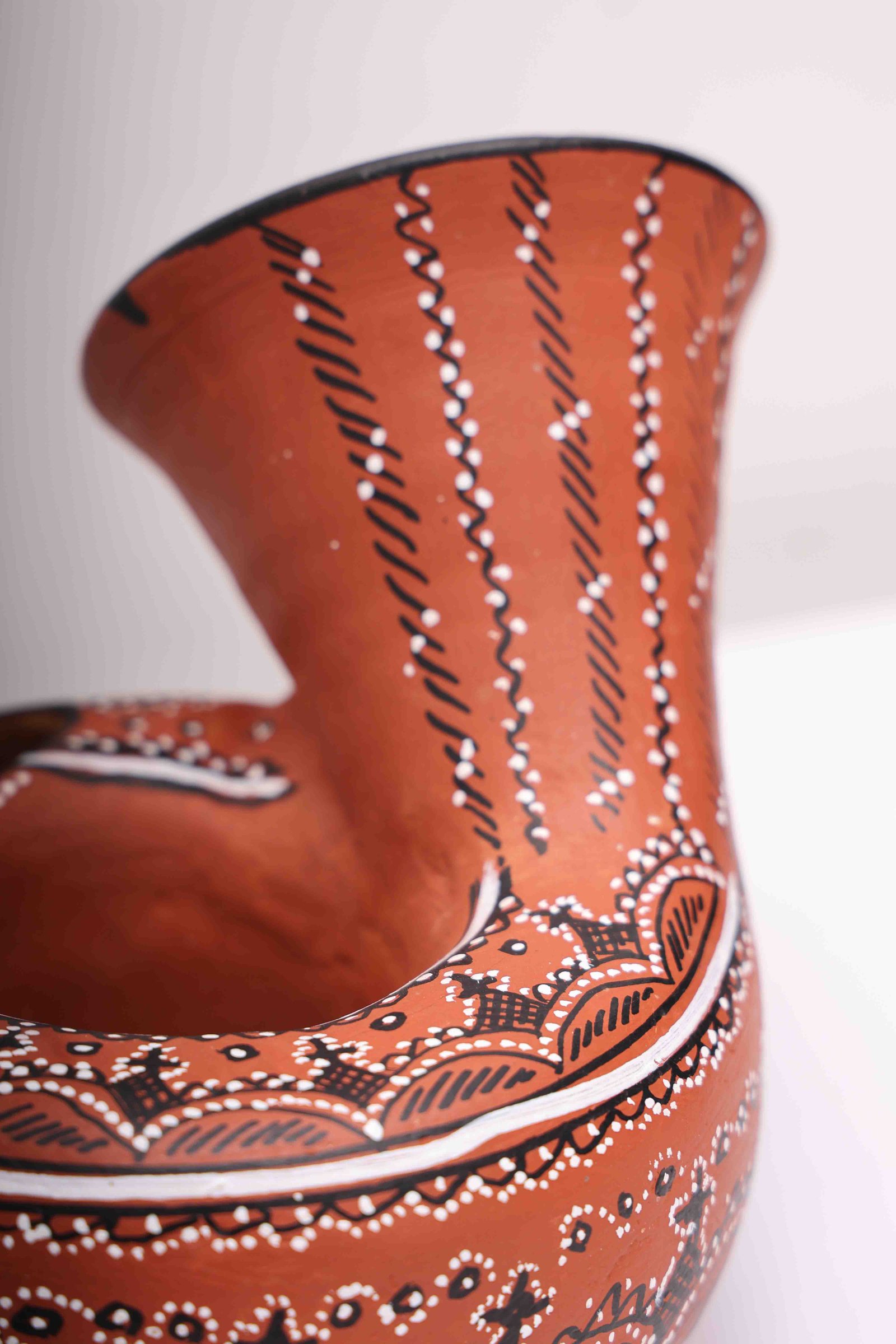 Our terracotta sculptures honor the Kutch terracotta painting tradition, which is known for its earthy warmth and colorful patterns. This open-minded art technique involves decorating natural clay surfaces with straight lines and tribal patterns. Other forms representing nature and life are painted without using any instruments. This sort of art is an elegant approach to highlighting Gujarat’s rich cultural heritage, especially in Kutch. Every item is expertly sculpted by a National Award-winning artist, resulting in designs with extraordinary intricacy and realism.