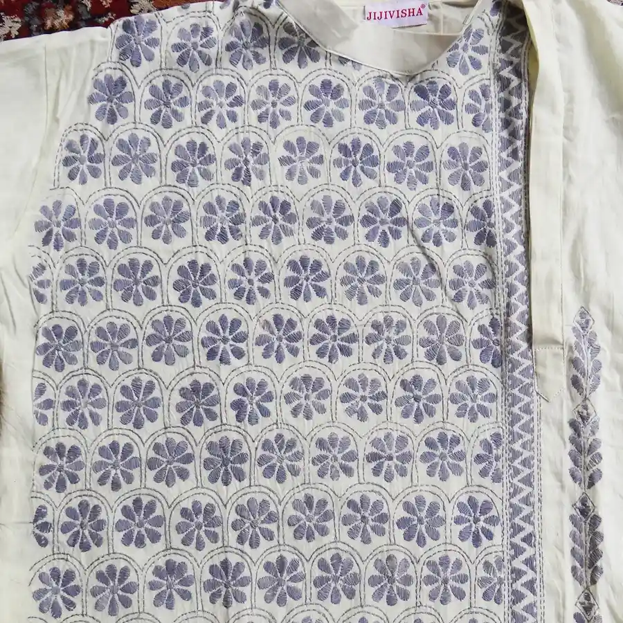 - Kurta is fabricated in cotton, comfortable to wear with Denims, Pyjamas etc Featuring Kantha embroidery, this is a 100% hand embroidered product.