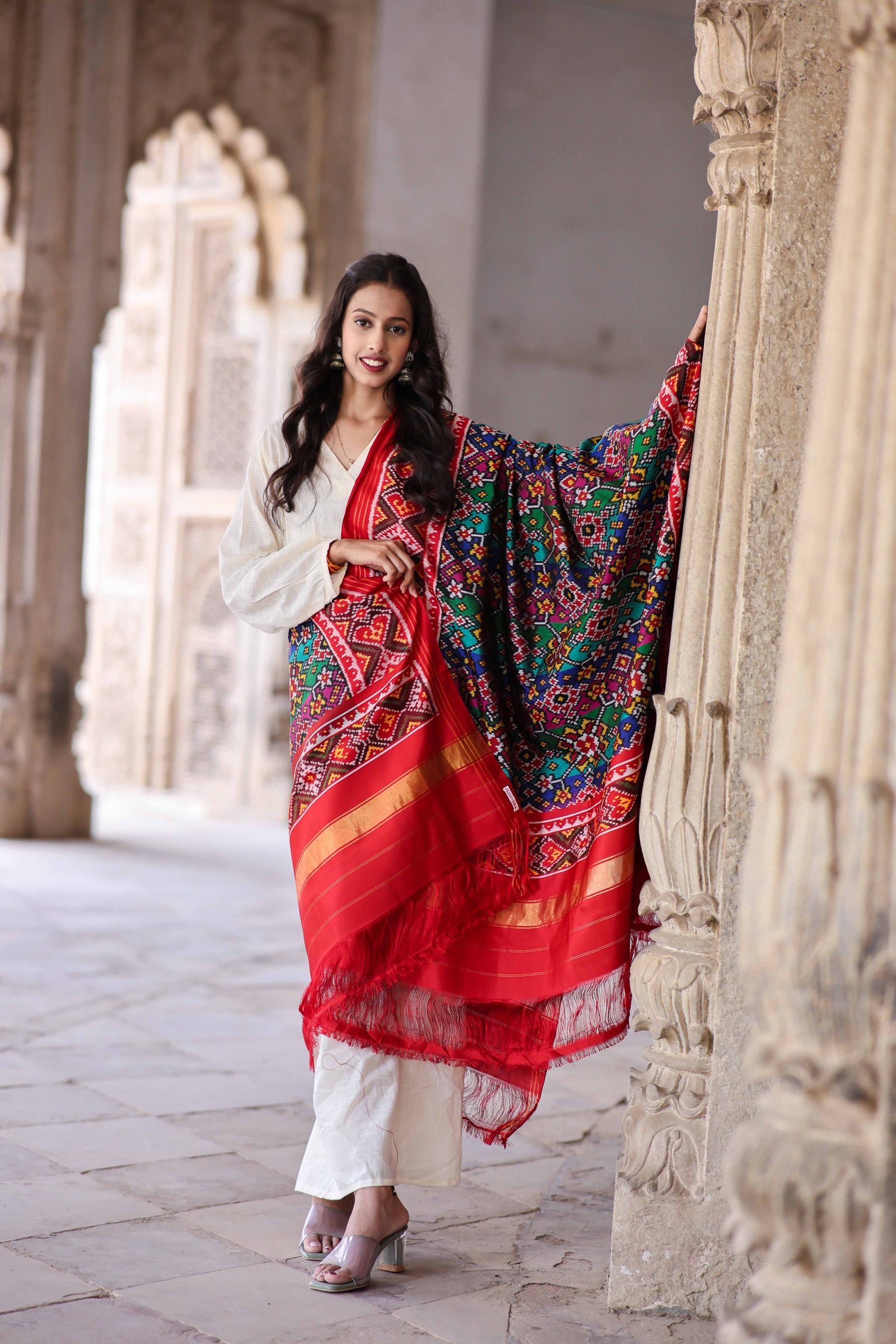Exquisite Red,Green,Blue Ikkat Patan Patola Dupatta