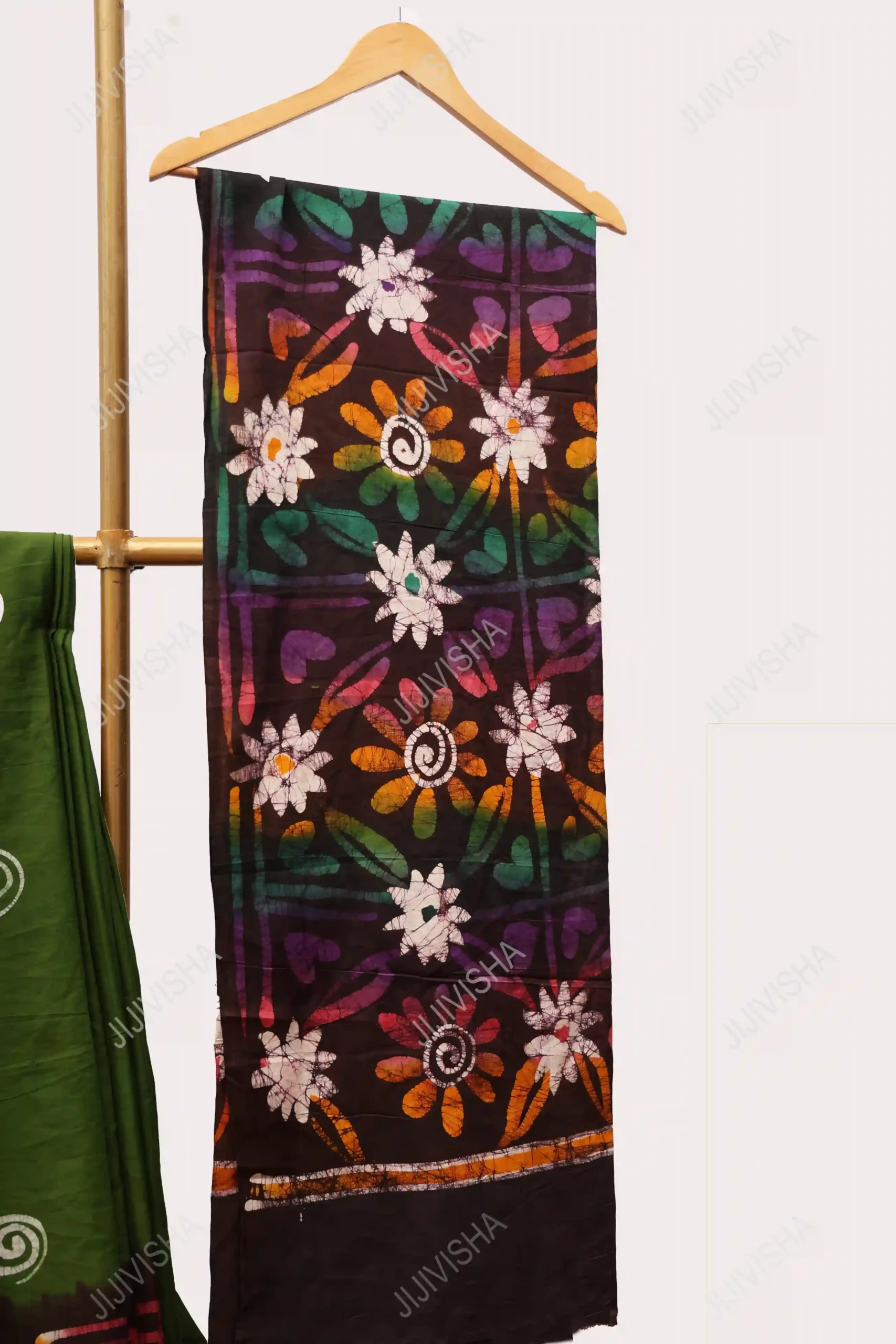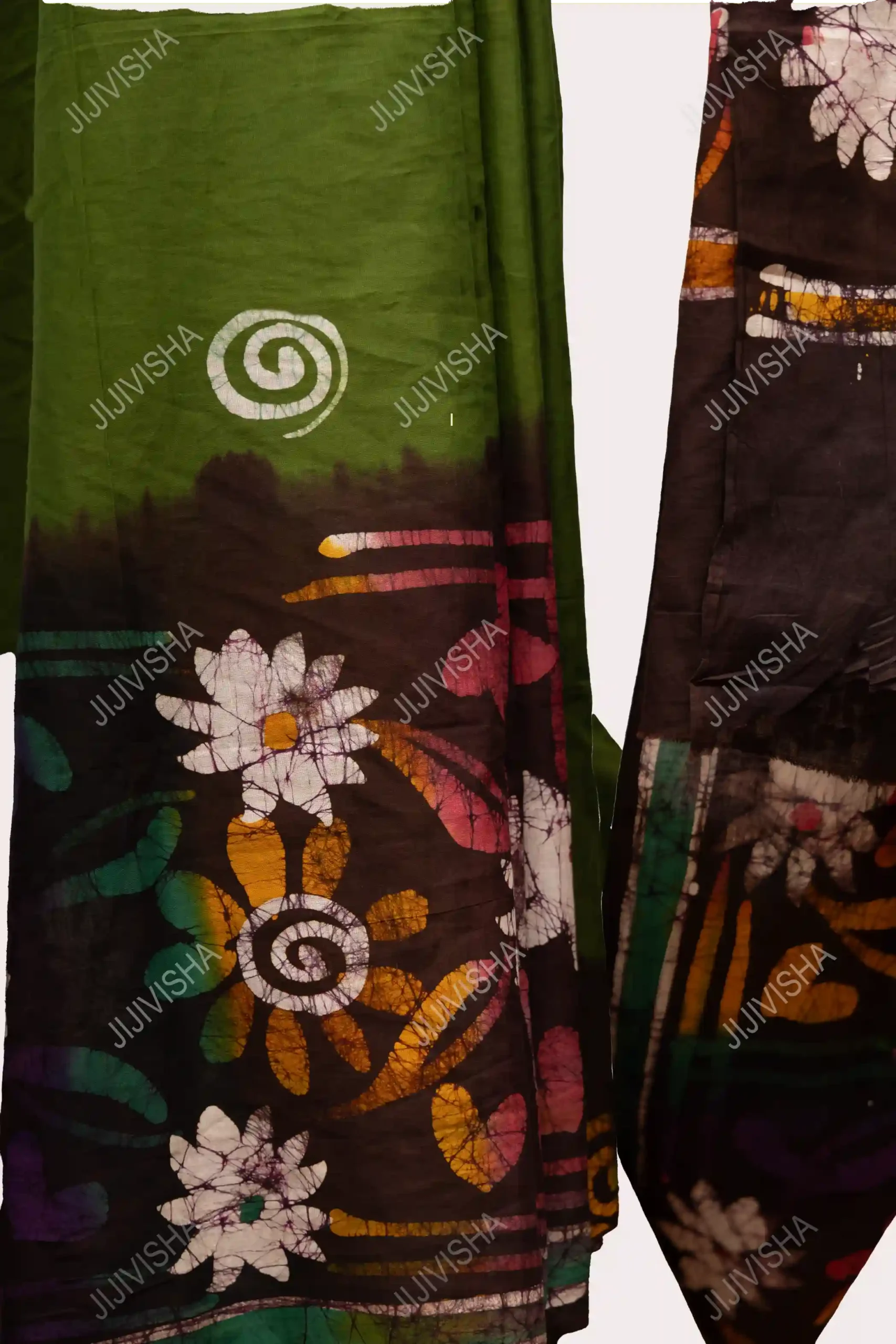 - Immerse yourself in a realm where nature and craftsmanship unite in the “Mystical Forest: Green Hand Batik Printed Cotton Saree.” This exquisite creation is not merely a garment; it is a tapestry upon which the forest’s mysteries are painted with the delicate strokes of artisanal devotion. Upon this verdurous tapestry, the artistry of hand batik printing unfurls its magic, capturing the nuances of life, growth, and the timeless beauty of the woods.