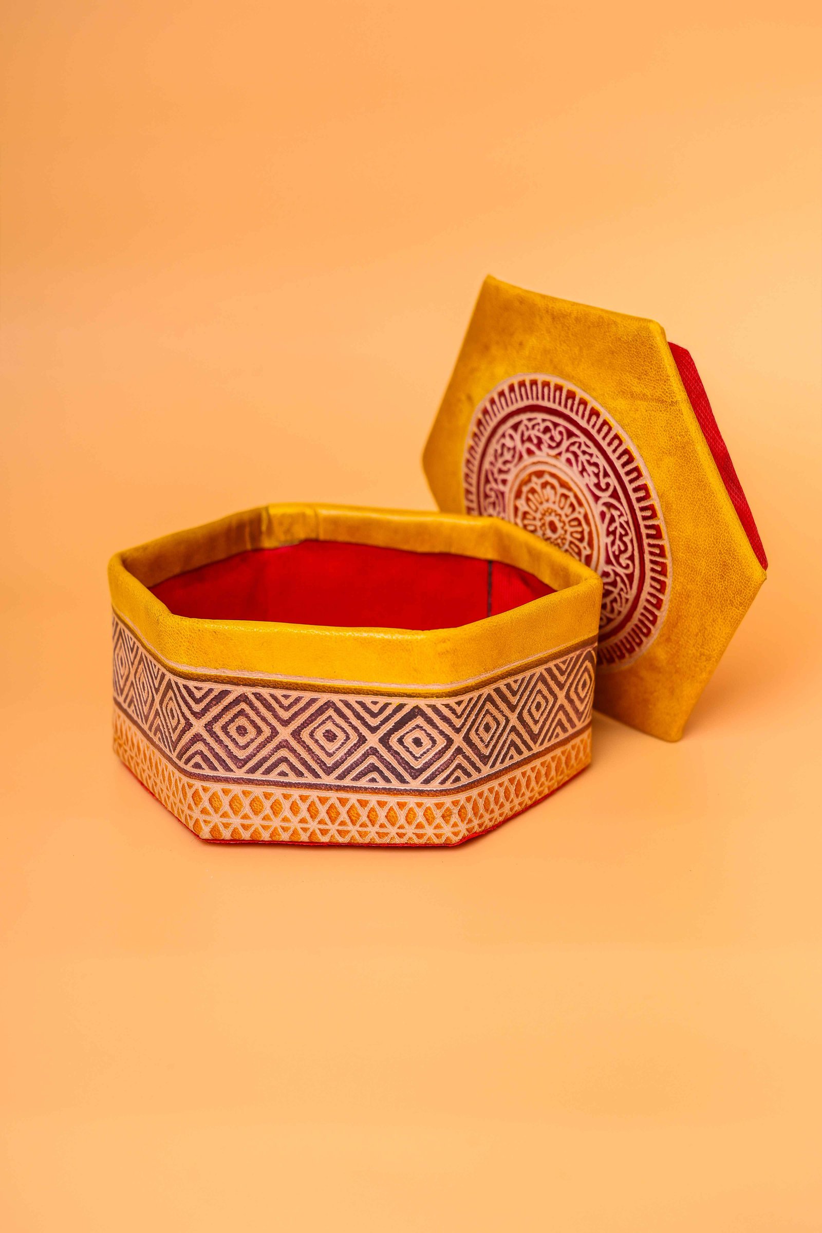 Whether as a gift for a loved one or a special addition to your own collection, the Hand-Crafted Leather Trinket Box from Jijivisha Collection is a statement of style and sophistication. With its superior craftsmanship and timeless design, this box offers both beauty and functionality, adding a touch of elegance to any space.