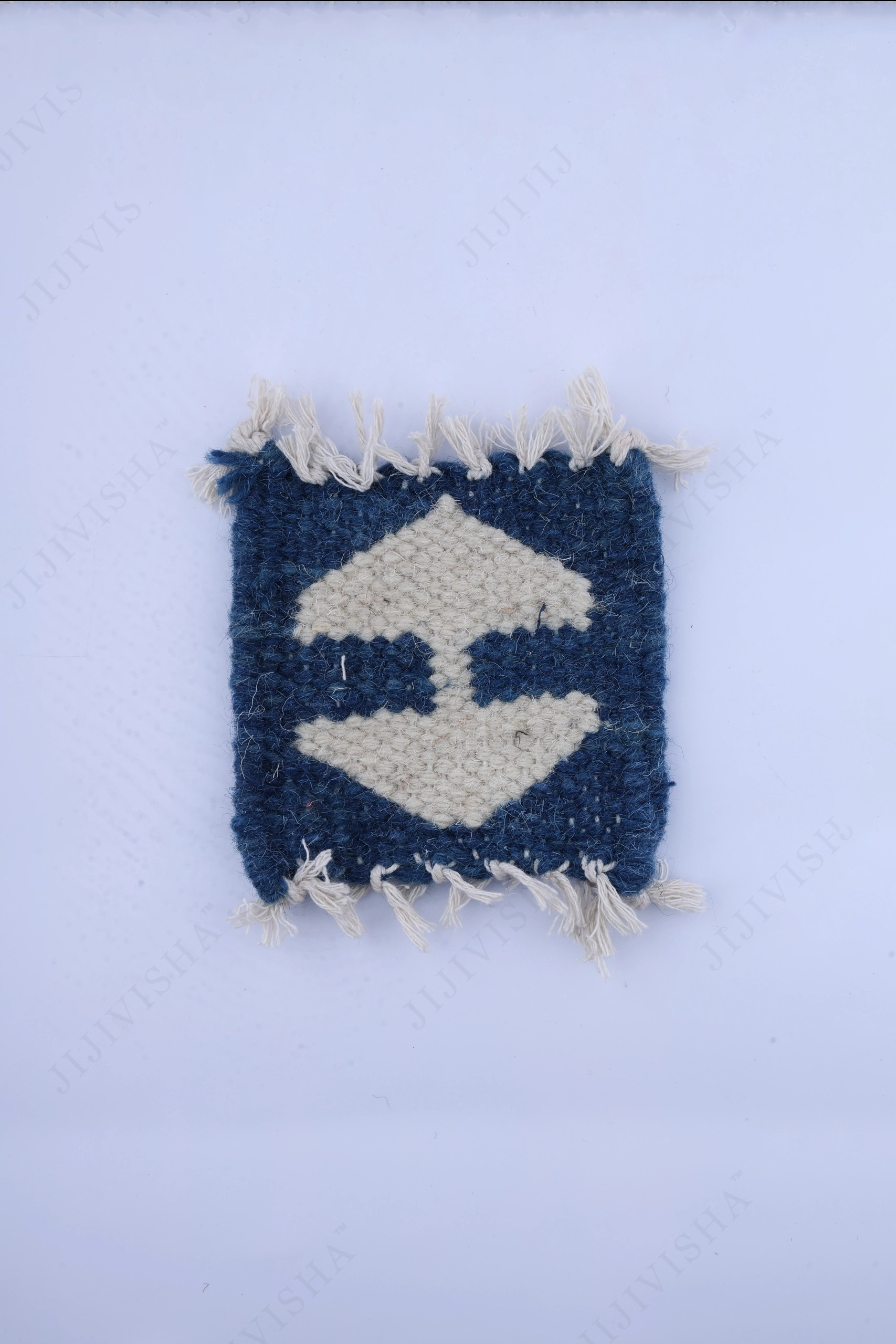 - The intricate indigo and off-white weaving creates a stylish and versatile design, making these coasters a perfect addition to any home. Whether you're hosting a gathering or enjoying a quiet evening, our woolen coasters blend seamlessly with various interior styles, adding a cozy and inviting atmosphere to your space.