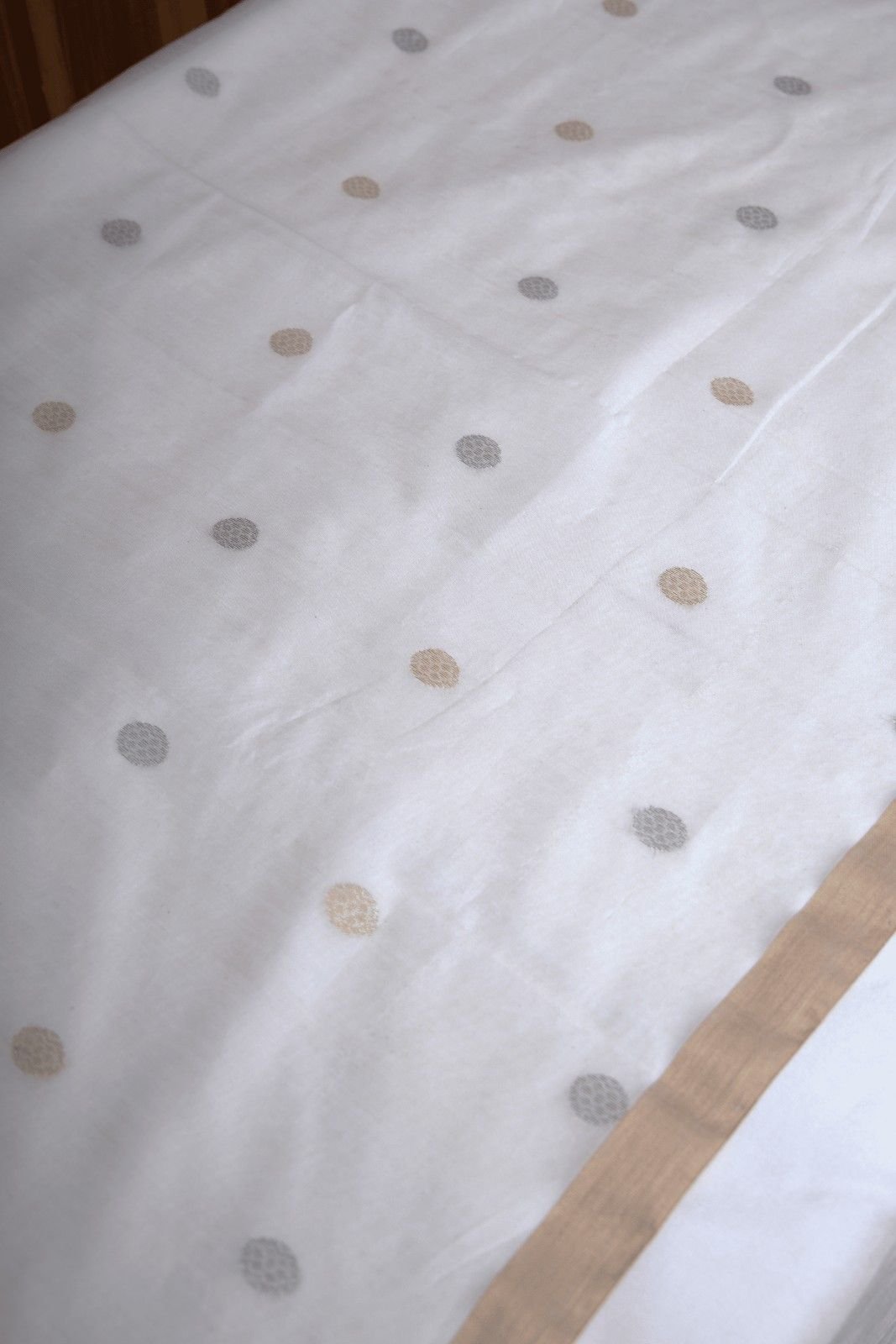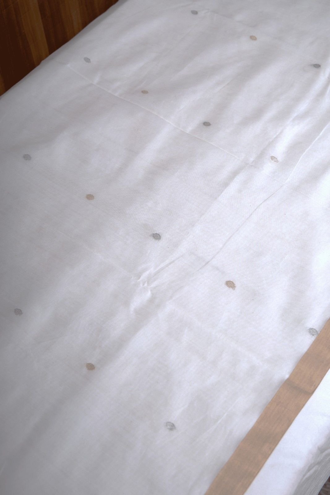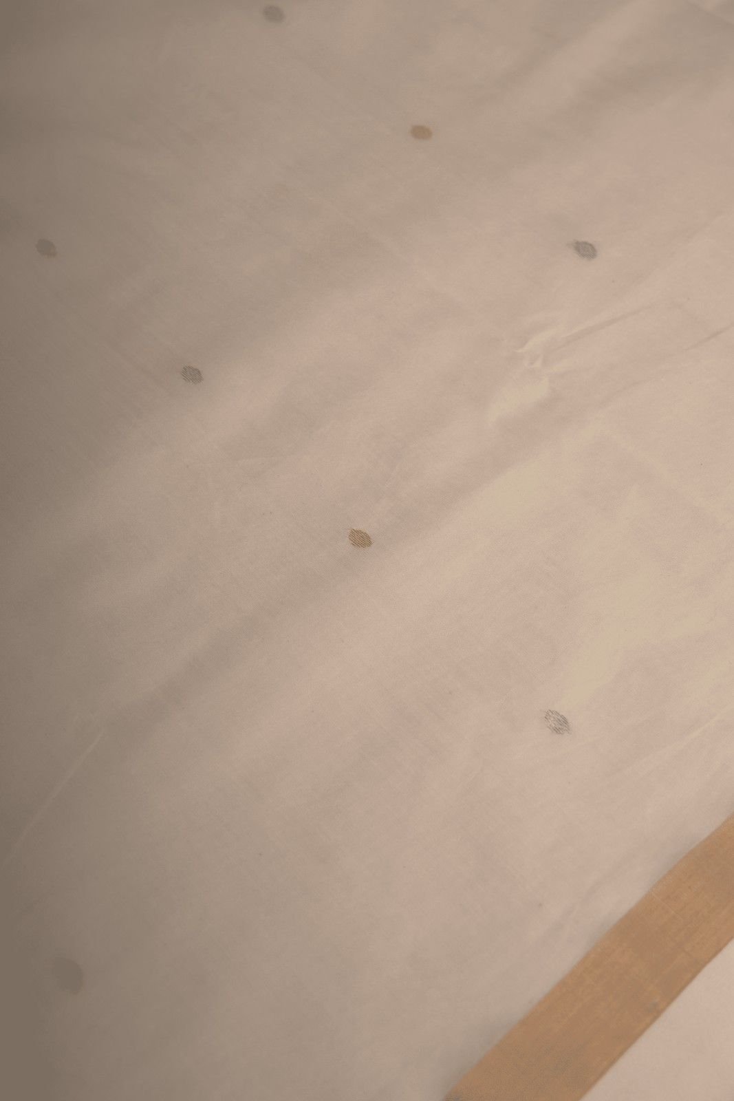 Ivory Chanderi Silk Dress Material With Golden And Silver Coins