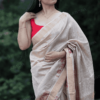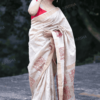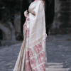 Woven with the soul of tradition and the warmth of storytelling, this Kosa Silk Saree is a tribute to rustic romance. The rich, textured weave of authentic Kosa silk meets the striking beauty of red tribal couple motifs, capturing the essence of connection, culture, and craft.