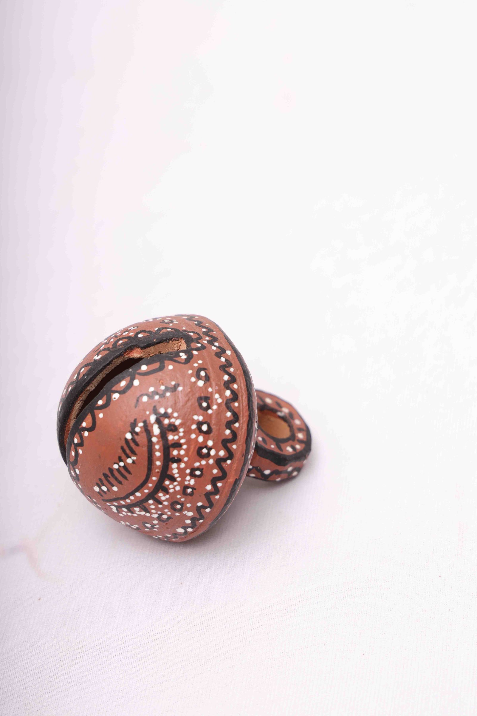 Elevate your home decor with our terracotta tribal bell chime! It is completely handcrafted with care to make it a perfect blend of tradition and artistry. This handmade terracotta bell has elaborate tribal patterns painted in black and white. Its design features animals and geometric patterns that express significant cultural traditions.