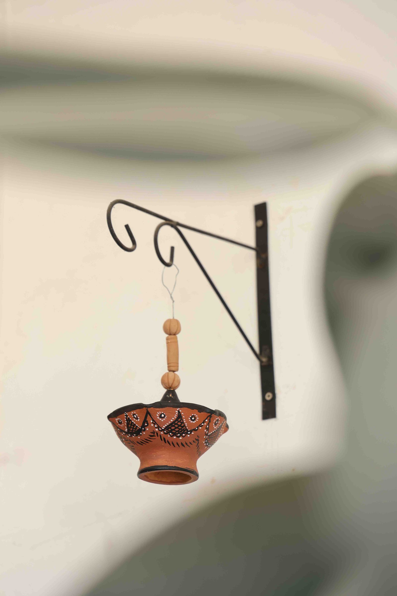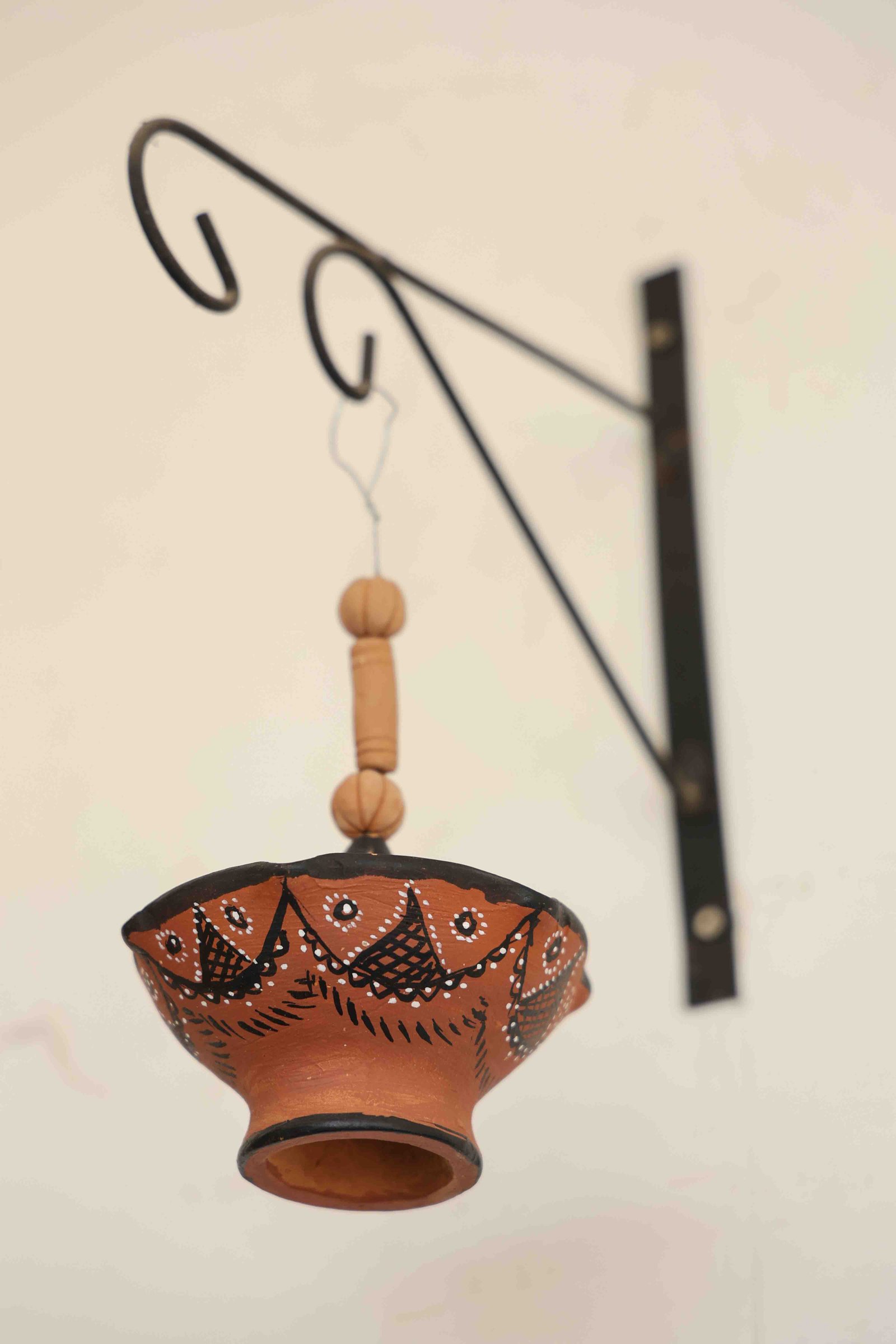 Kutch Handpainted Terracotta Hanging Diya with Tribal Design