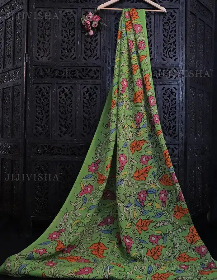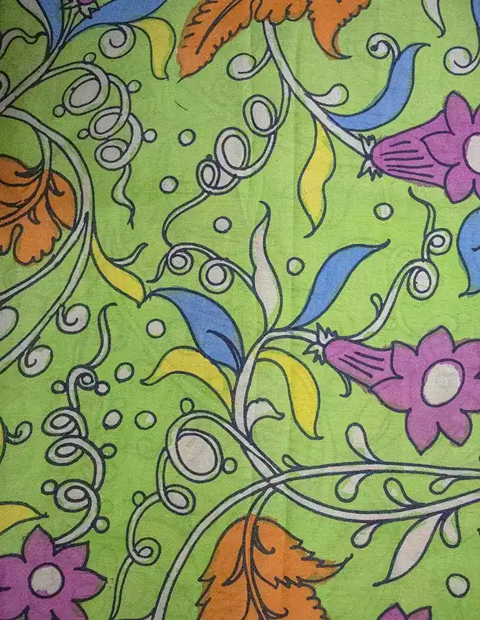 - Notably, our Light Green Hand-Painted Kalamkari Fabric is a testament to traditional craftsmanship, as each piece is meticulously created by skilled artisans. Revel in the authenticity and charm of handmade textiles that transcend the ordinary, making your?ensemble a true work of art.