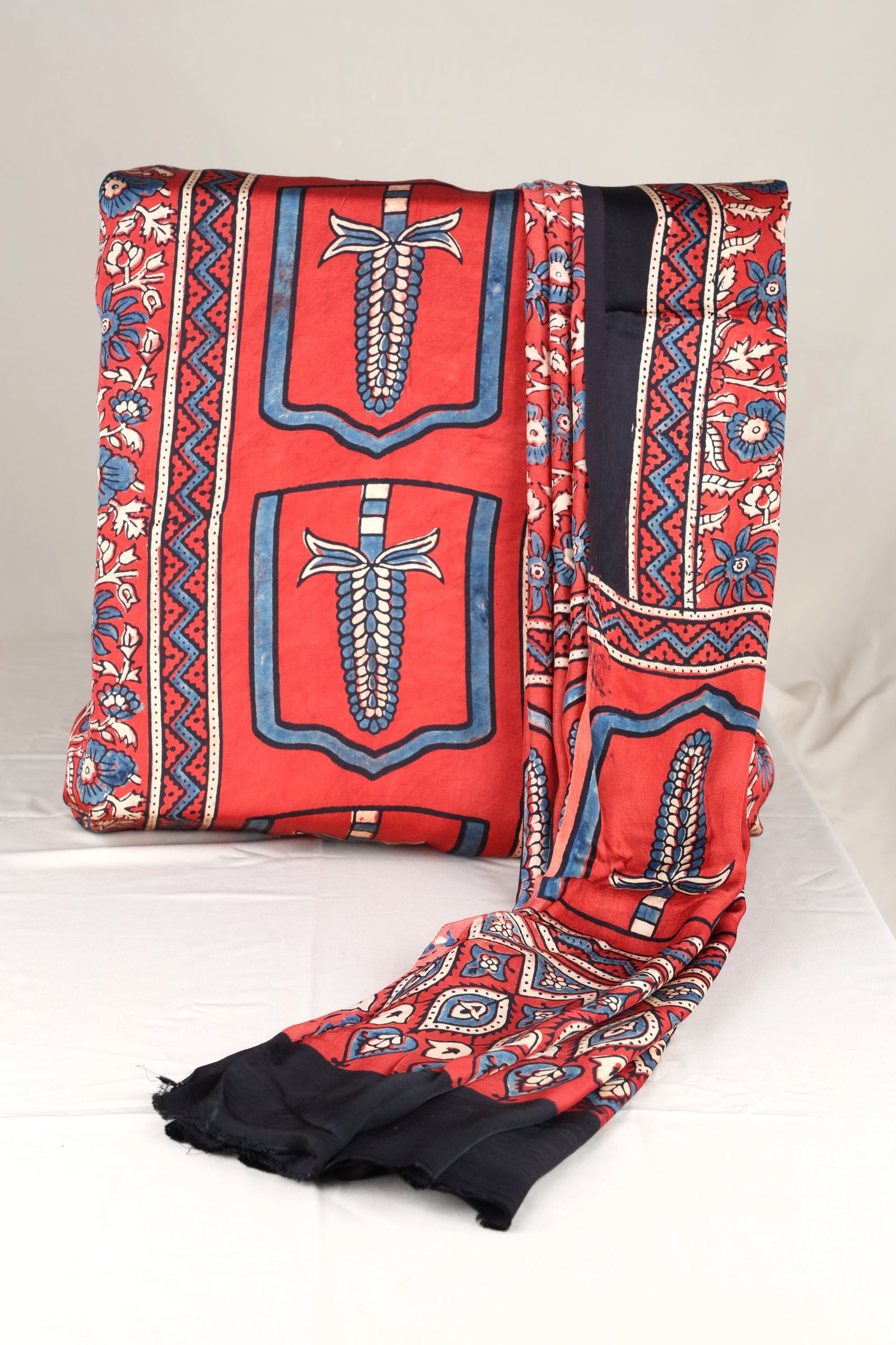 - This Maroon Ajrakh Print Modal Silk Kurta Dupatta Fabric Set is a versatile addition to any ethnic wardrobe, offering endless styling possibilities. Whether worn as a coordinated set or mixed and matched with other pieces, this set allows you to express your unique sense of style with confidence and grace.