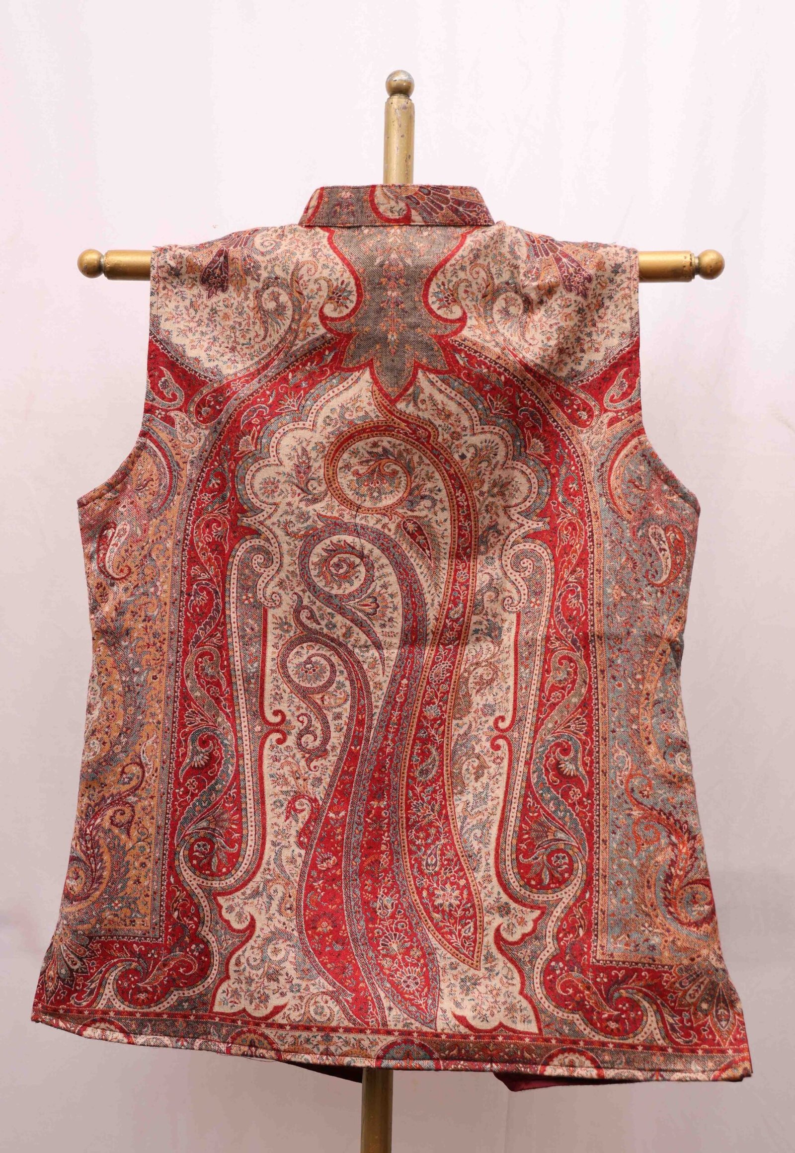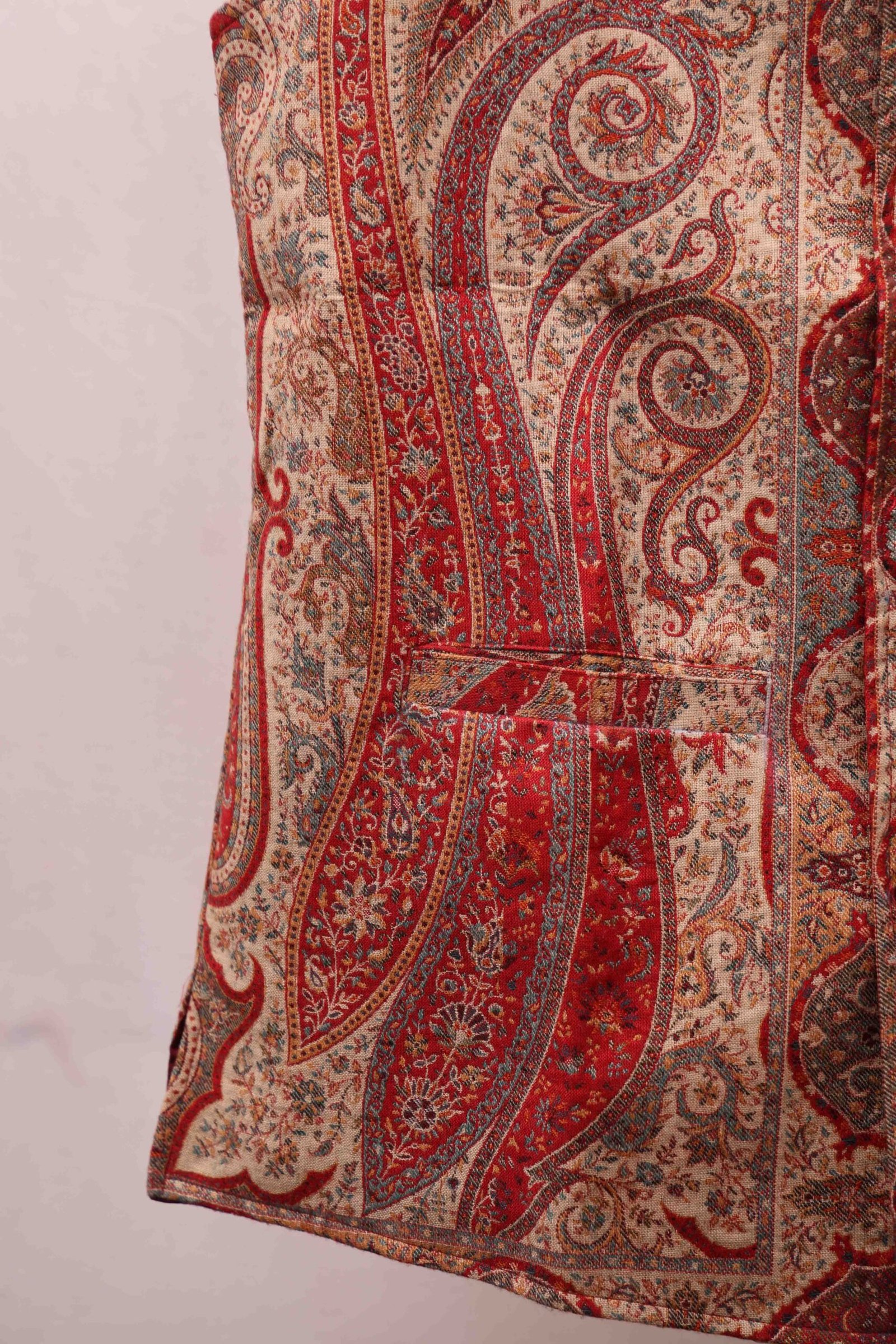 - The Maroon and Ivory Kani Woven Sleeveless Men's Jacket is a masterful fusion of traditional craftsmanship and contemporary style.