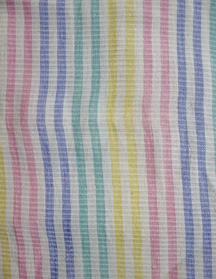 - The hand woven texture adds a touch of authenticity, ensuring a unique and artisanal feel. Perfect for crafting cheerful clothing, eclectic accessories, orIntroducing our Multicolored Stripes Hand Woven Cotton Fabric a vibrant blend of colors skillfully woven to add joy and flair to your creations. This fabric features a medley of lively stripes in various shades, making it a versatile and eye-catching choice for your creative projects. lively home decor items, this fabric invites you to infuse your designs with a burst of color and personality.