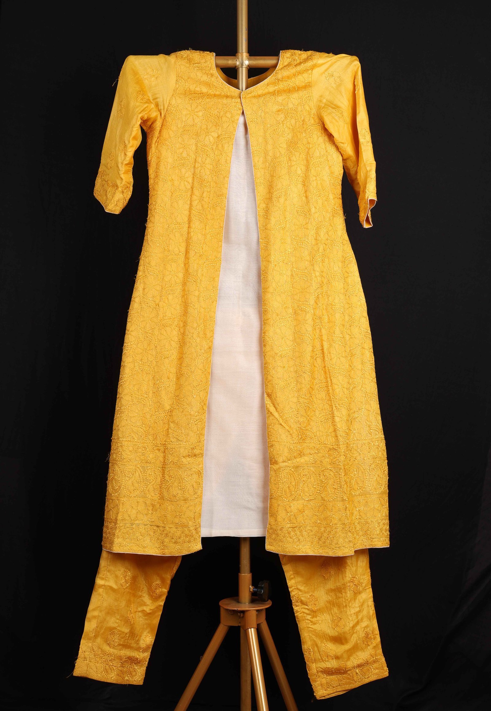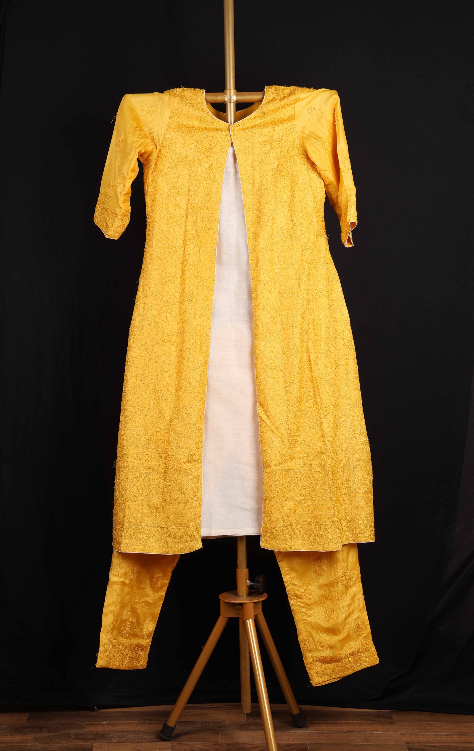 Mustard Tussar Silk Jacket With Chikankari Hand Embroidery