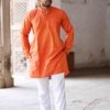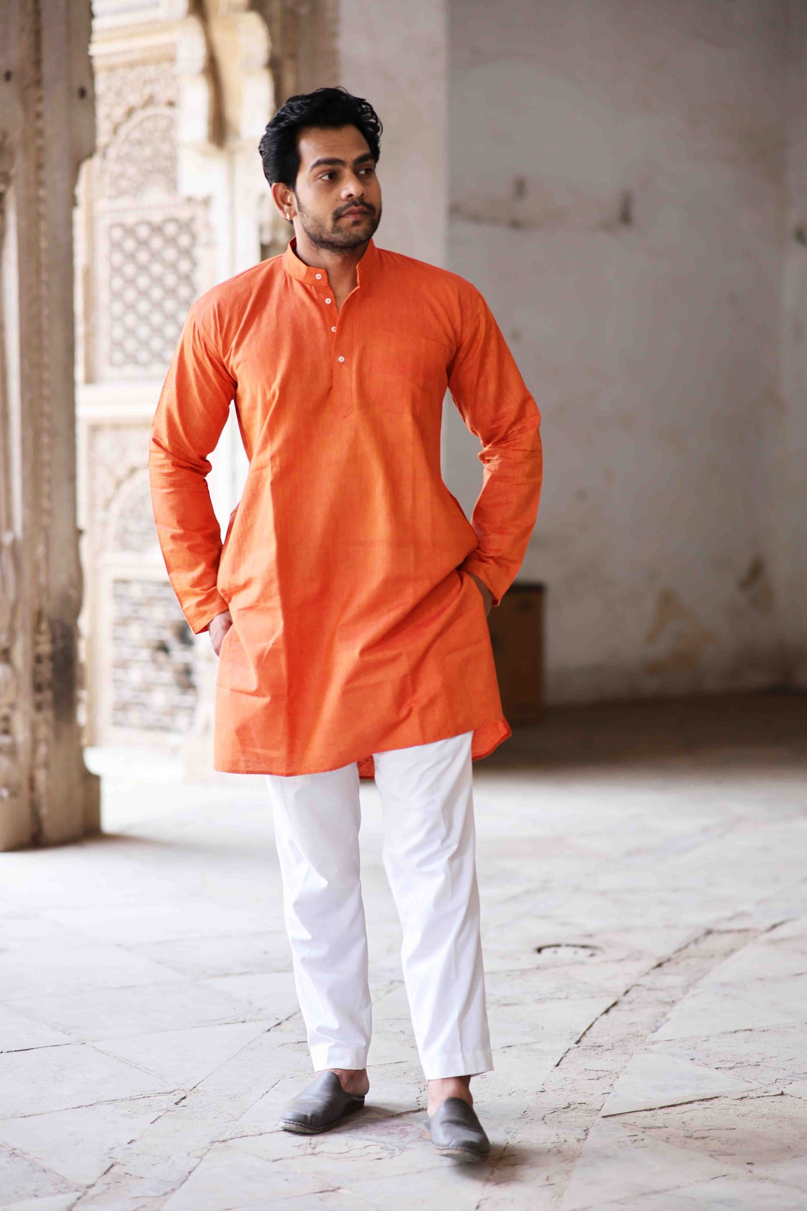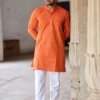Orange Hand Woven Cotton Full Sleeves Kurta