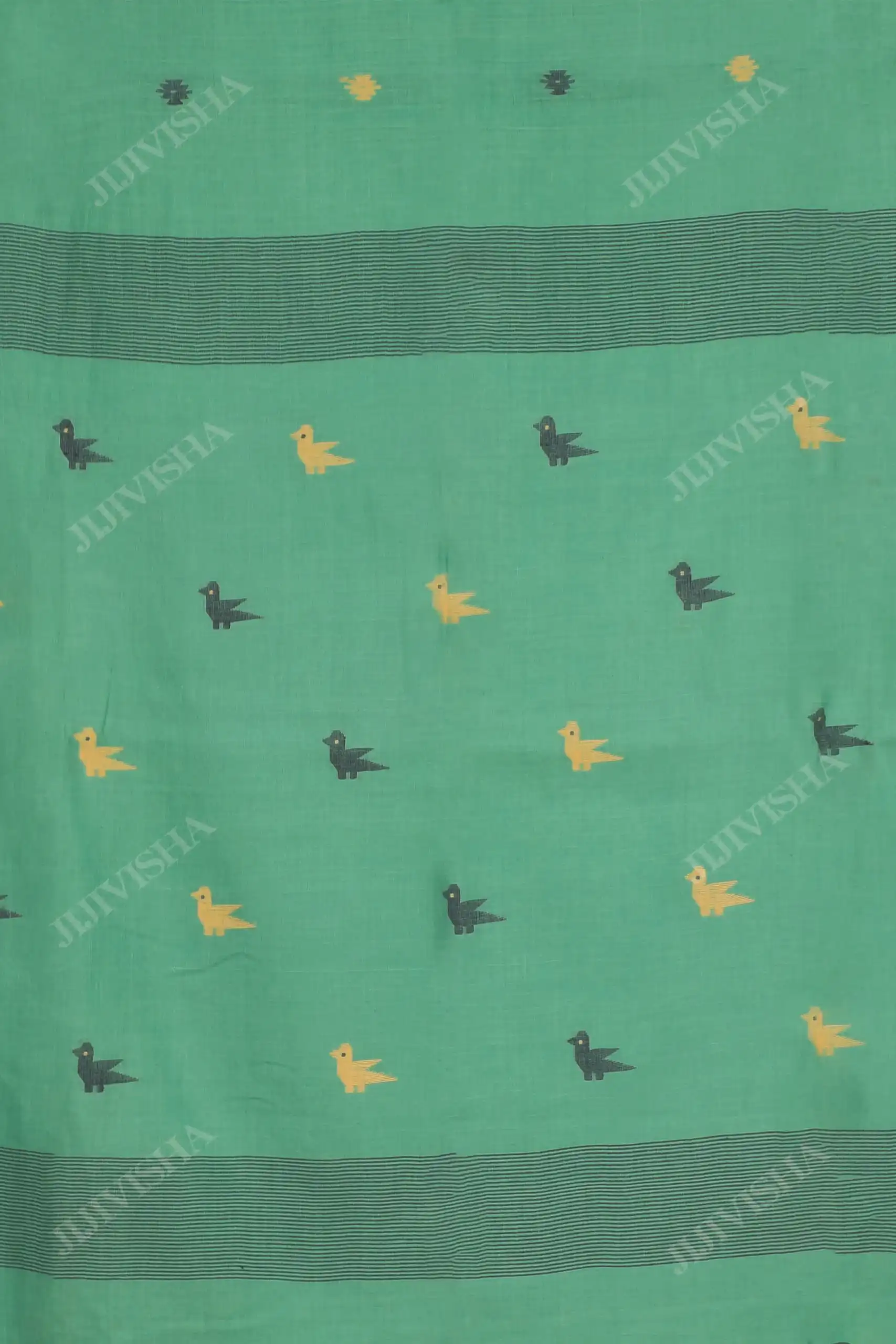 Parrot Green Jamdani Cotton Saree