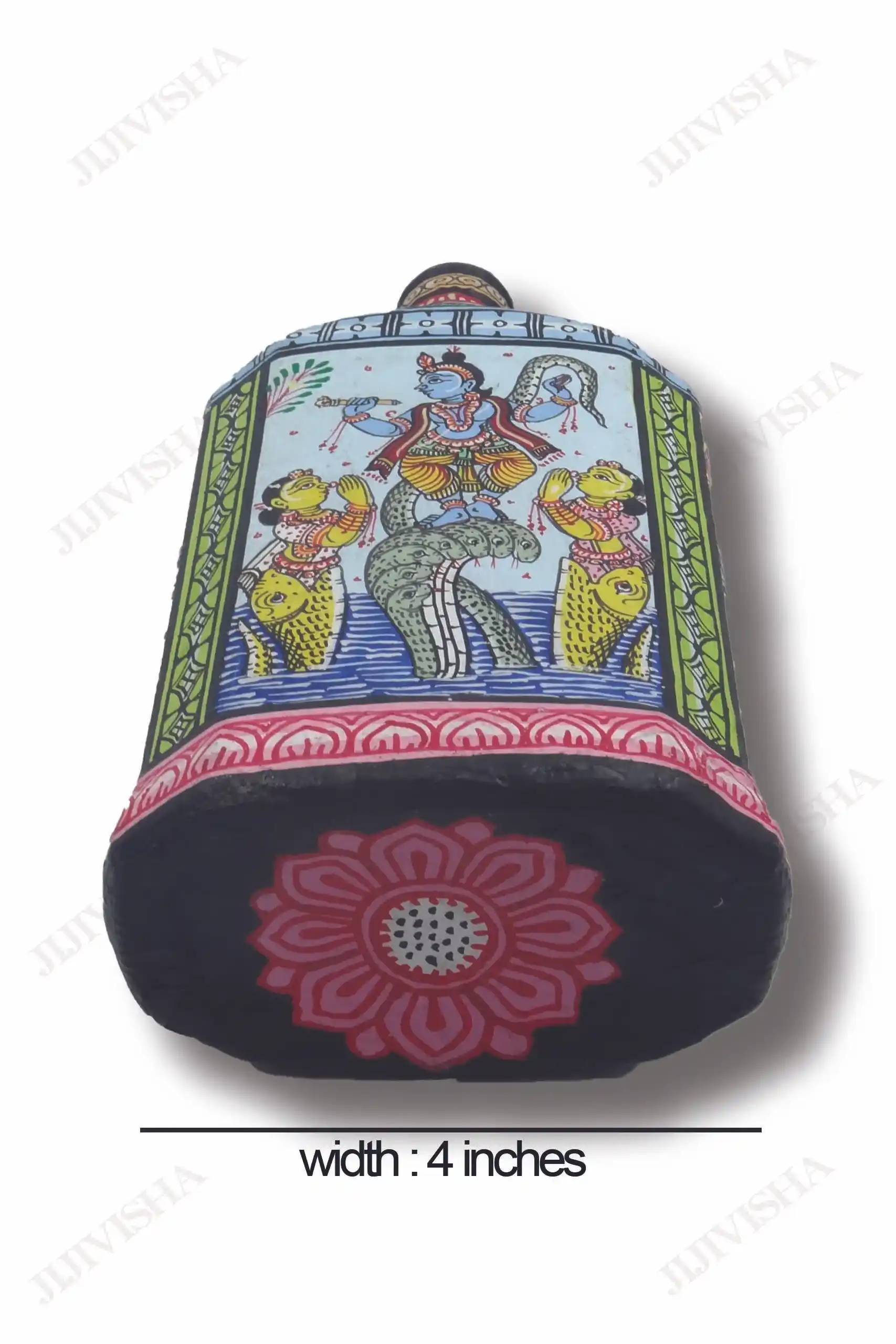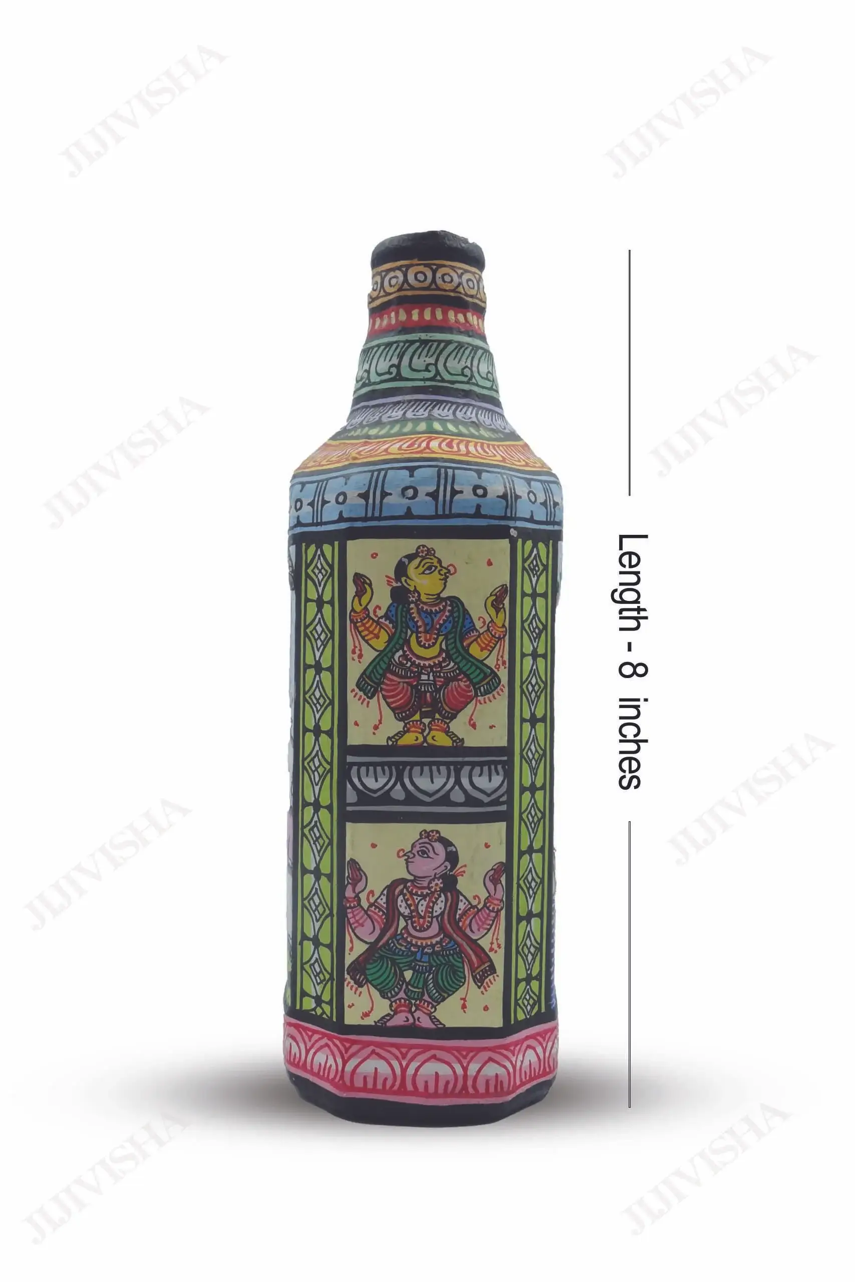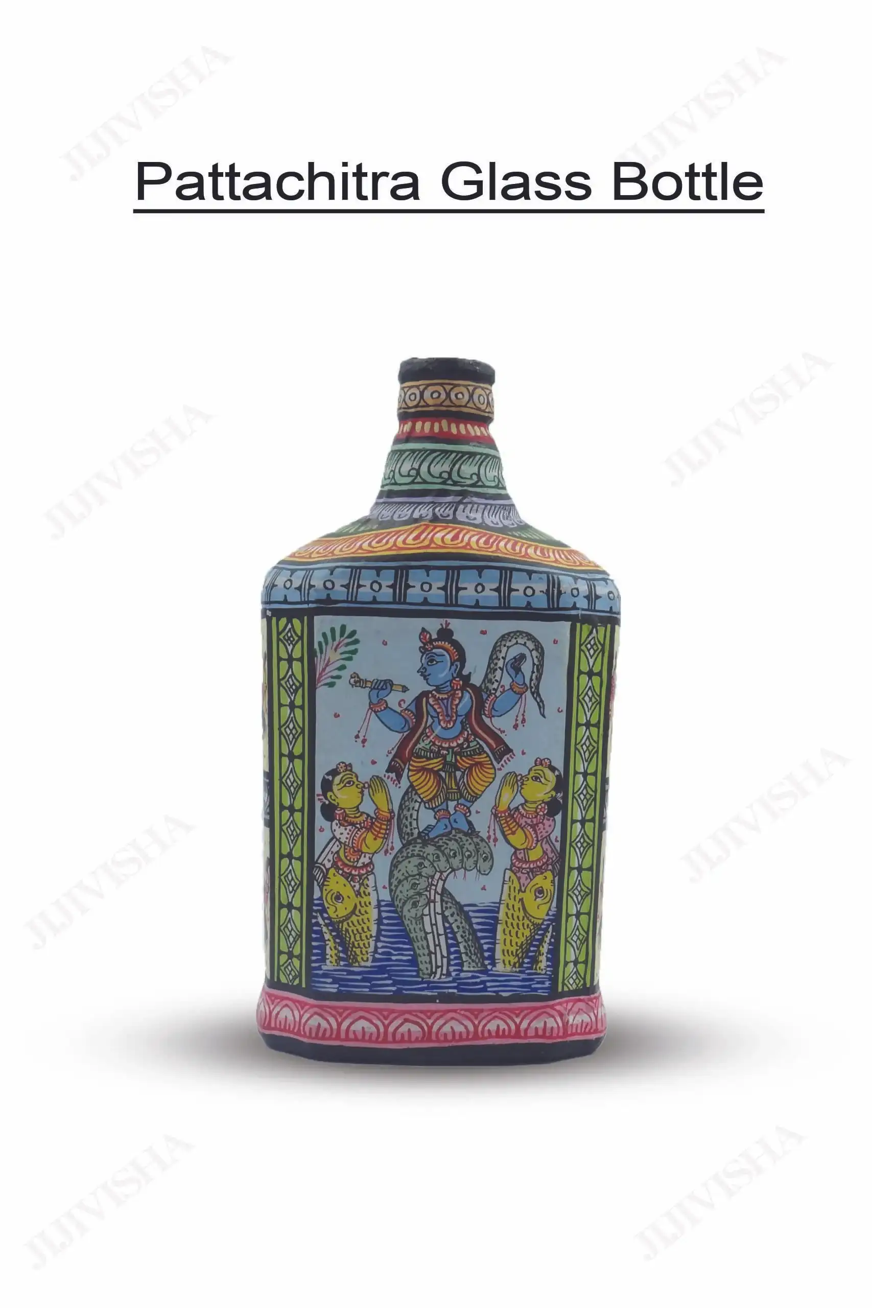 - It’s unbreakable bottle wrapped in pattachitra fabric painted allover showcasing various Leelas of VishnuJi
