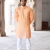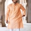 Peach Hand Woven Cotton Full Sleeves Kurta