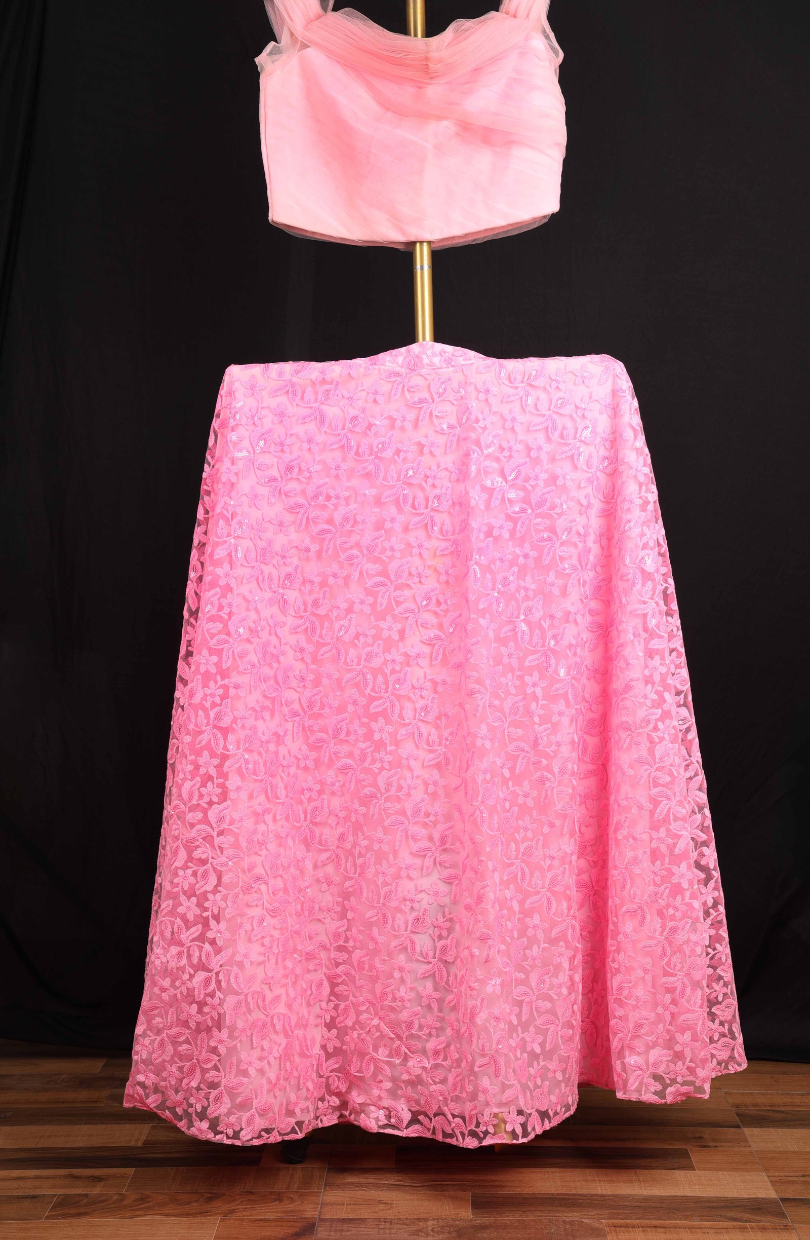 pink georgette lehenga with jaal embroidery