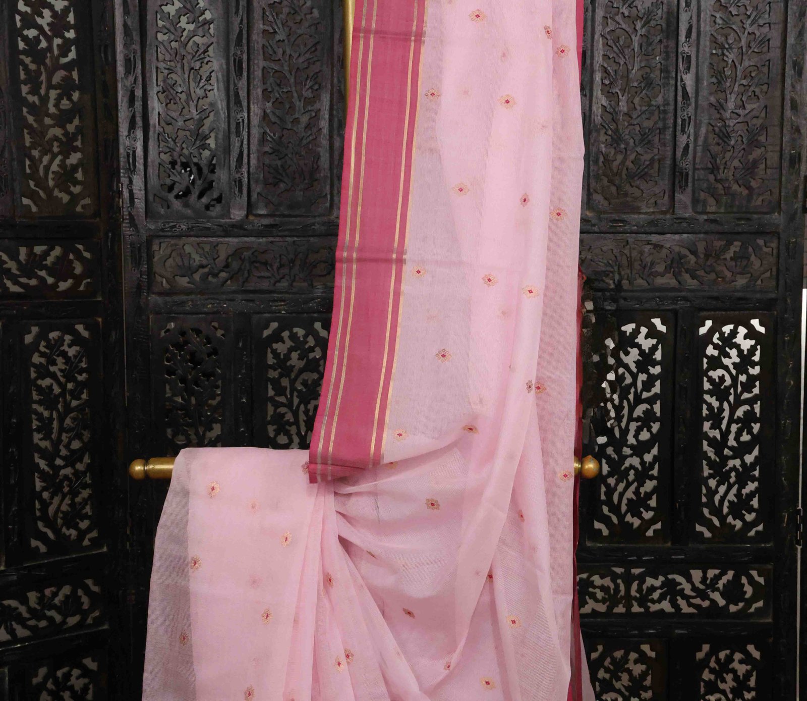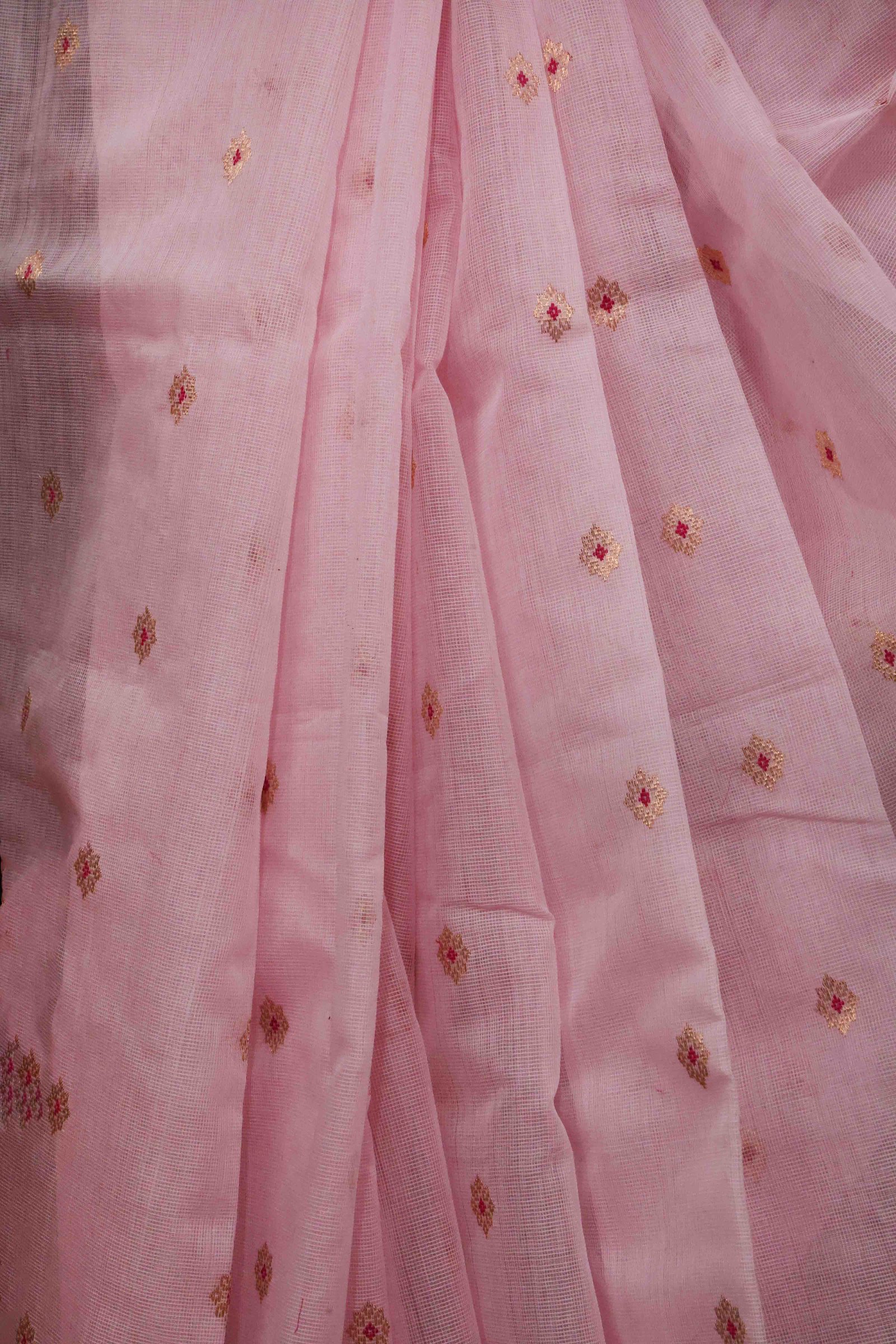 Be the first to review “Pink Kota Silk Handwoven Saree With Zari Work”