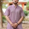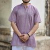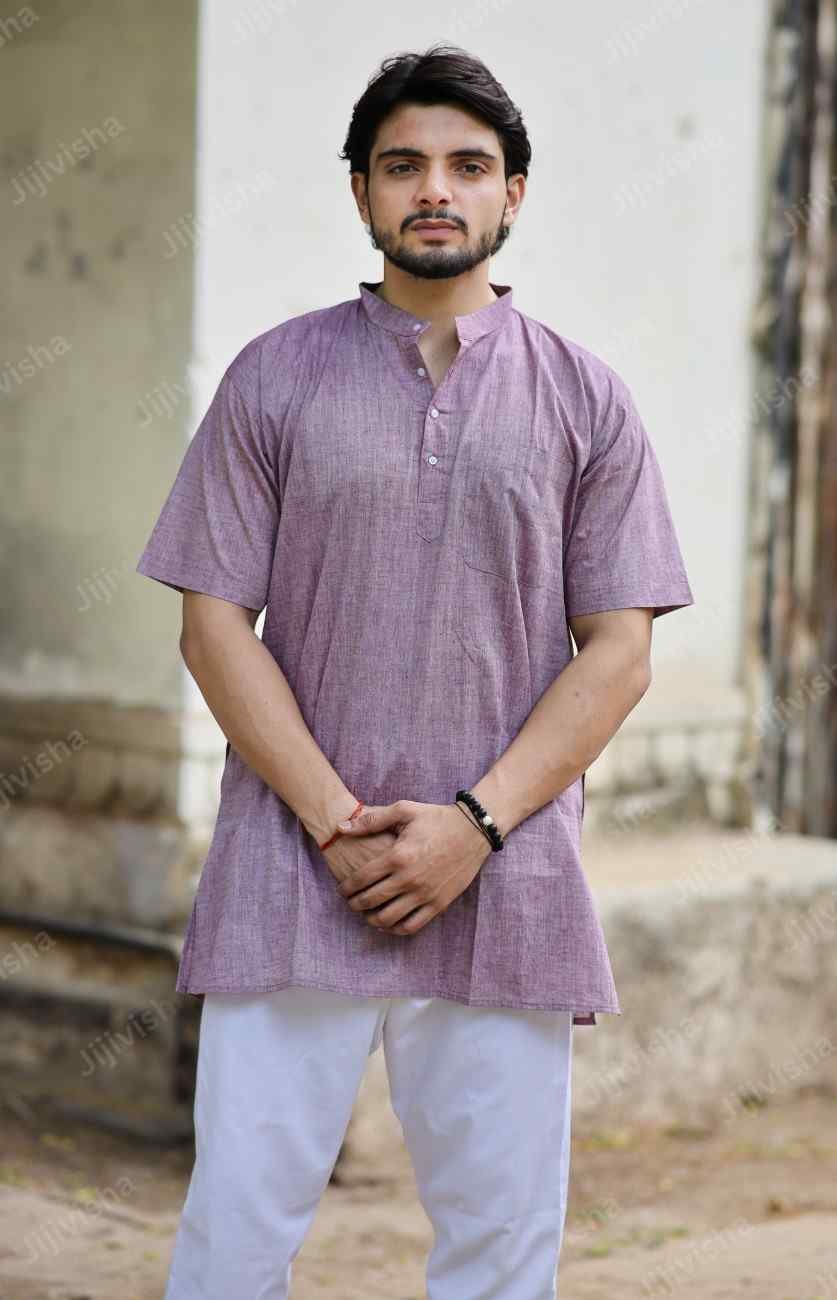 Purple Hand Woven Cotton Half Sleeves Kurta