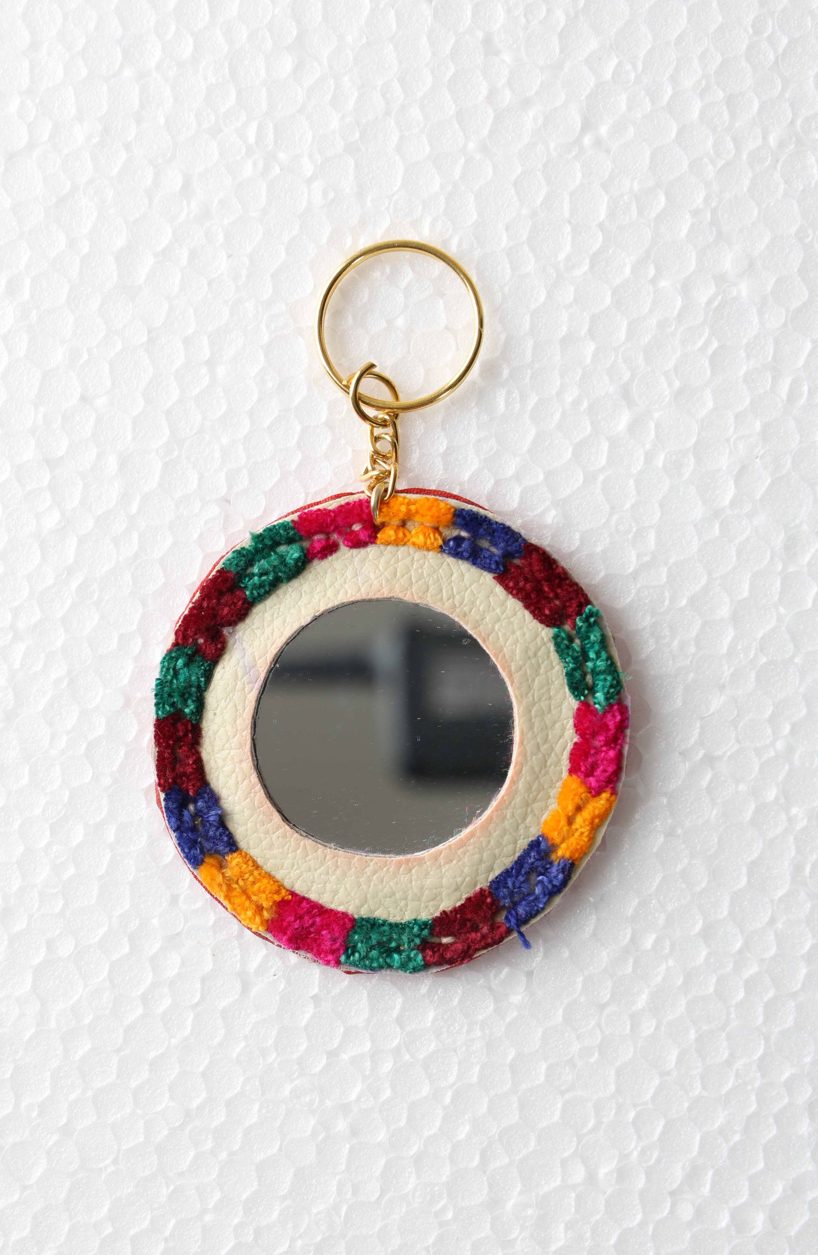 - Elevate your space with the enchanting "Rainbow Mirage Oval Mirror with Leather Border," a captivating blend of artisanal craftsmanship and vibrant design. This unique mirror features a border intricately adorned with multicolored thread work, reminiscent of a dazzling rainbow dancing across the sky.
