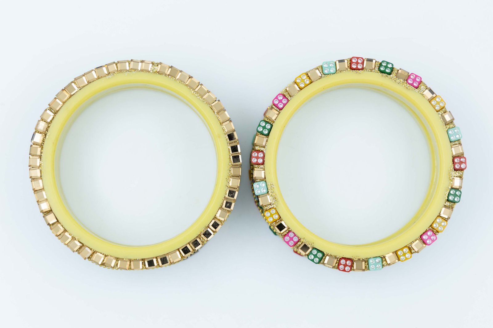 The intricate Kundan embellishments can be delicate. Always wear the bangles with care—avoid dropping them or hitting them against hard surfaces to prevent chipping or damage to the settings.Store Separately in a Soft Pouch