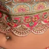 - The true showstopper is the lehenga—yards of billowing silk in a blushing pink hue, lavishly adorned with intricate goldwork. It exudes a decadent, fairytale-like aura, making you feel like royalty.
