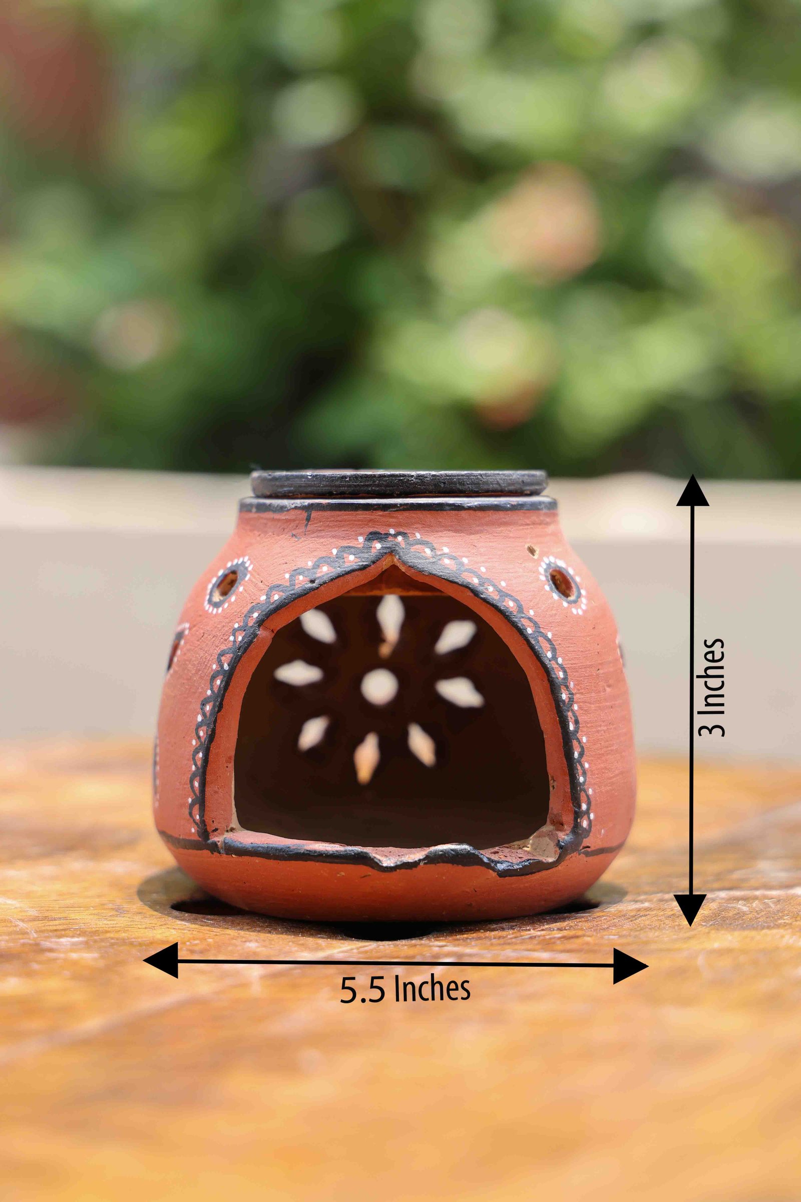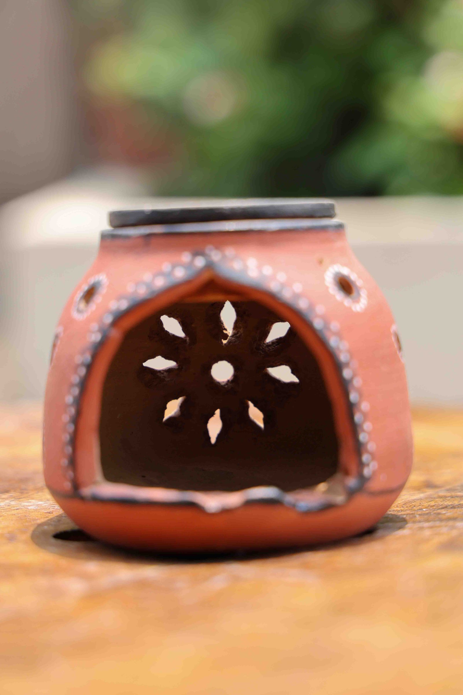 Welcome a blend of tradition and peace with our Floral Cutwork Diffuser Lamp! It is handcrafted from natural terracotta. This piece functions as both a table lamp diffuser and an aromatherapy lamp diffuser. Infuse your space with both soft light and calming scents.