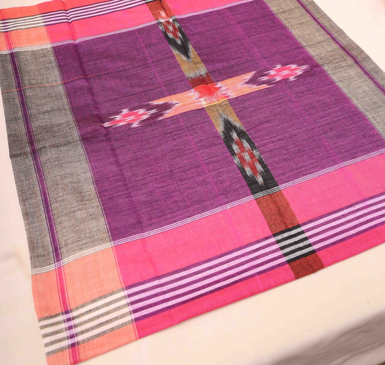 Sambalpuri Cotton Purple Handkerchief With Red Border