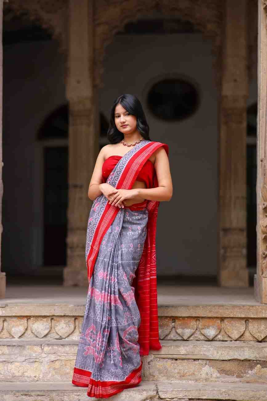 - Introducing our exquisite Sambalpuri Ikkat Chakra Art Cotton Saree, a masterpiece of craftsmanship and elegance.