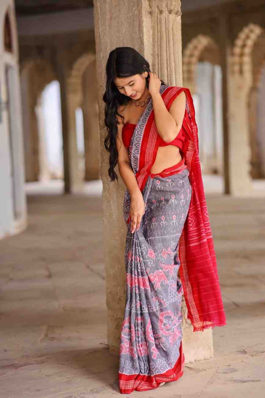Sambalpuri Ikkat Chakra Art Grey Cotton Saree