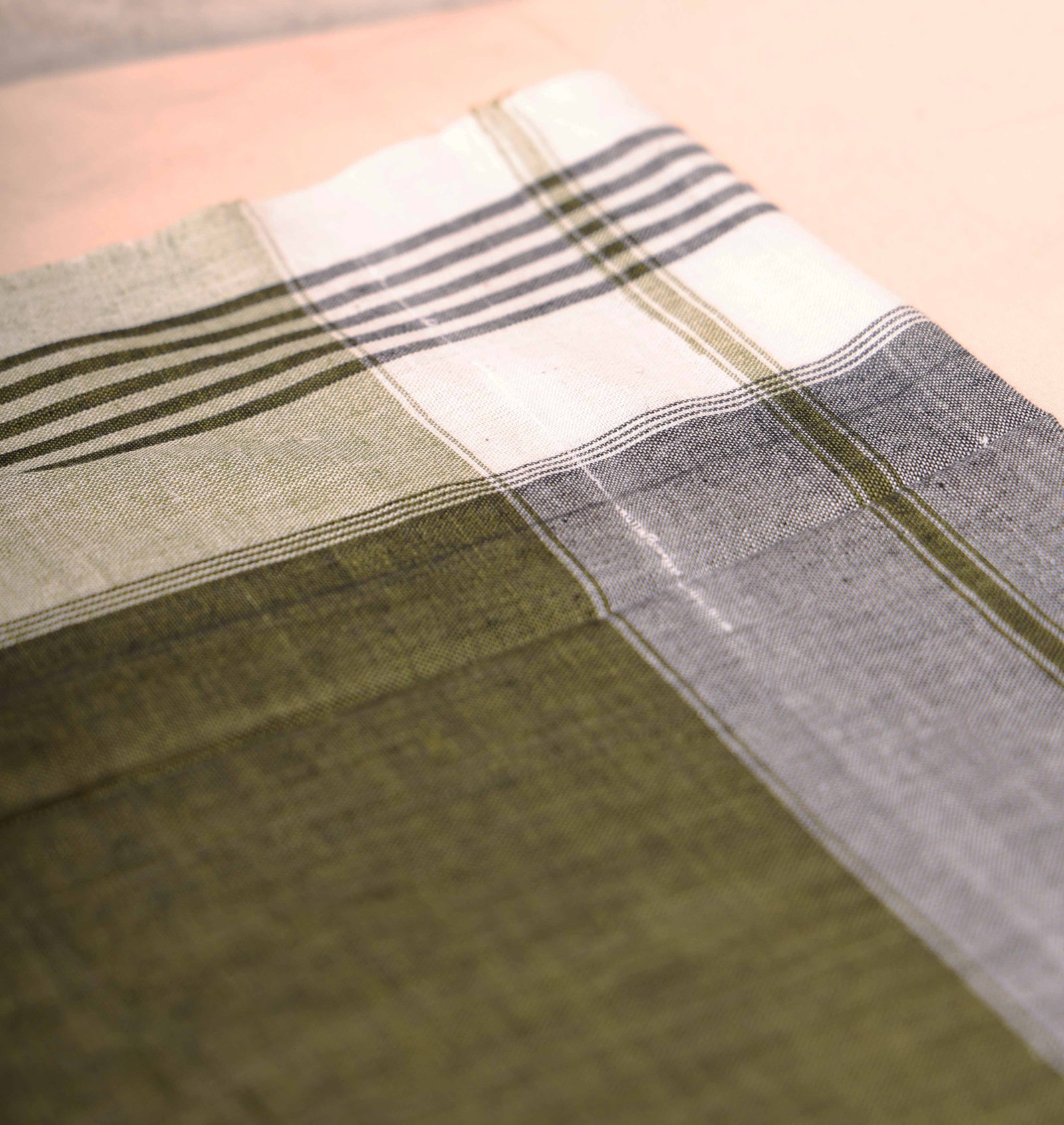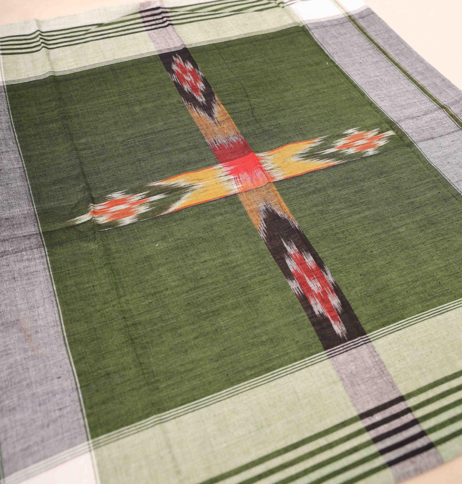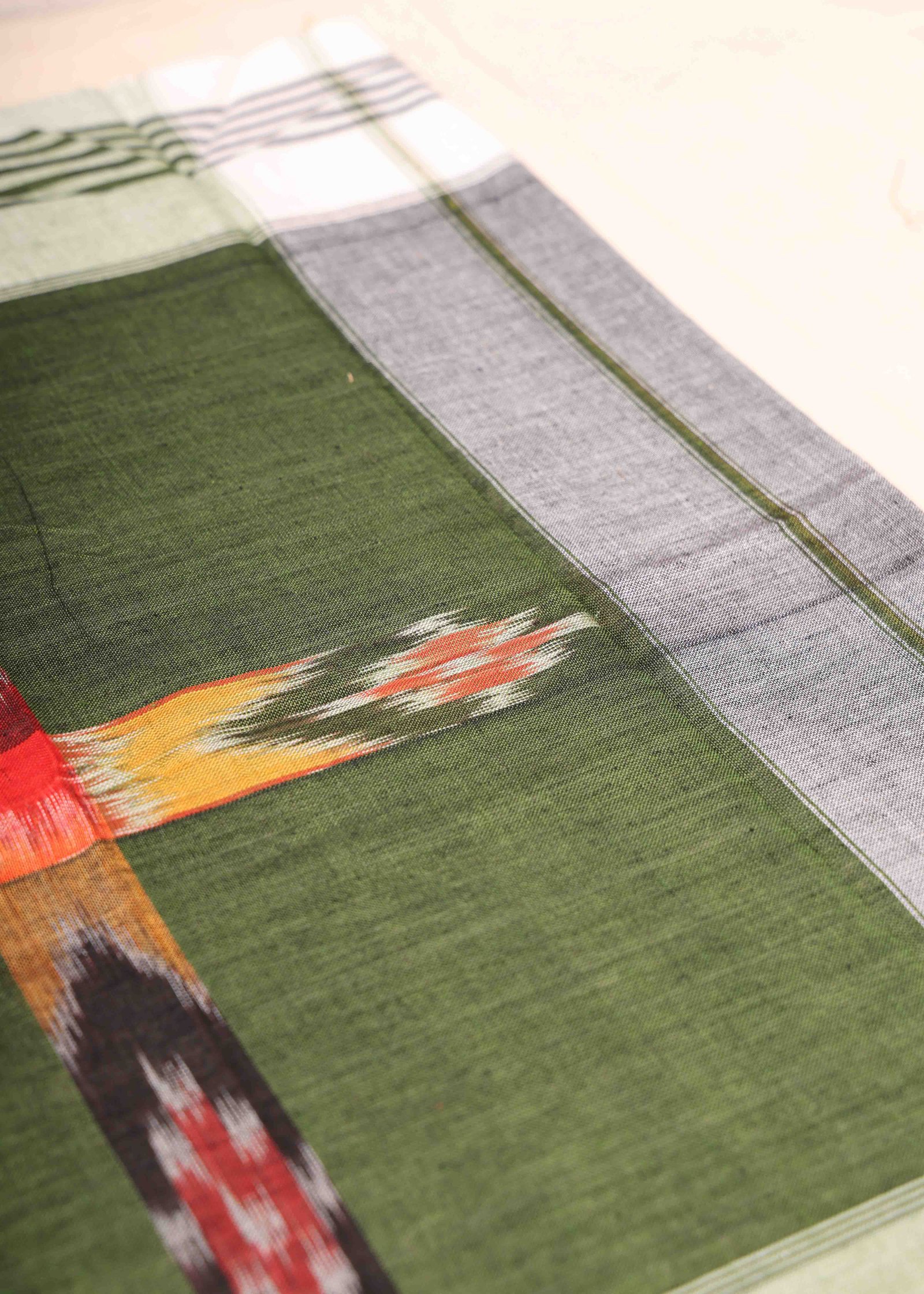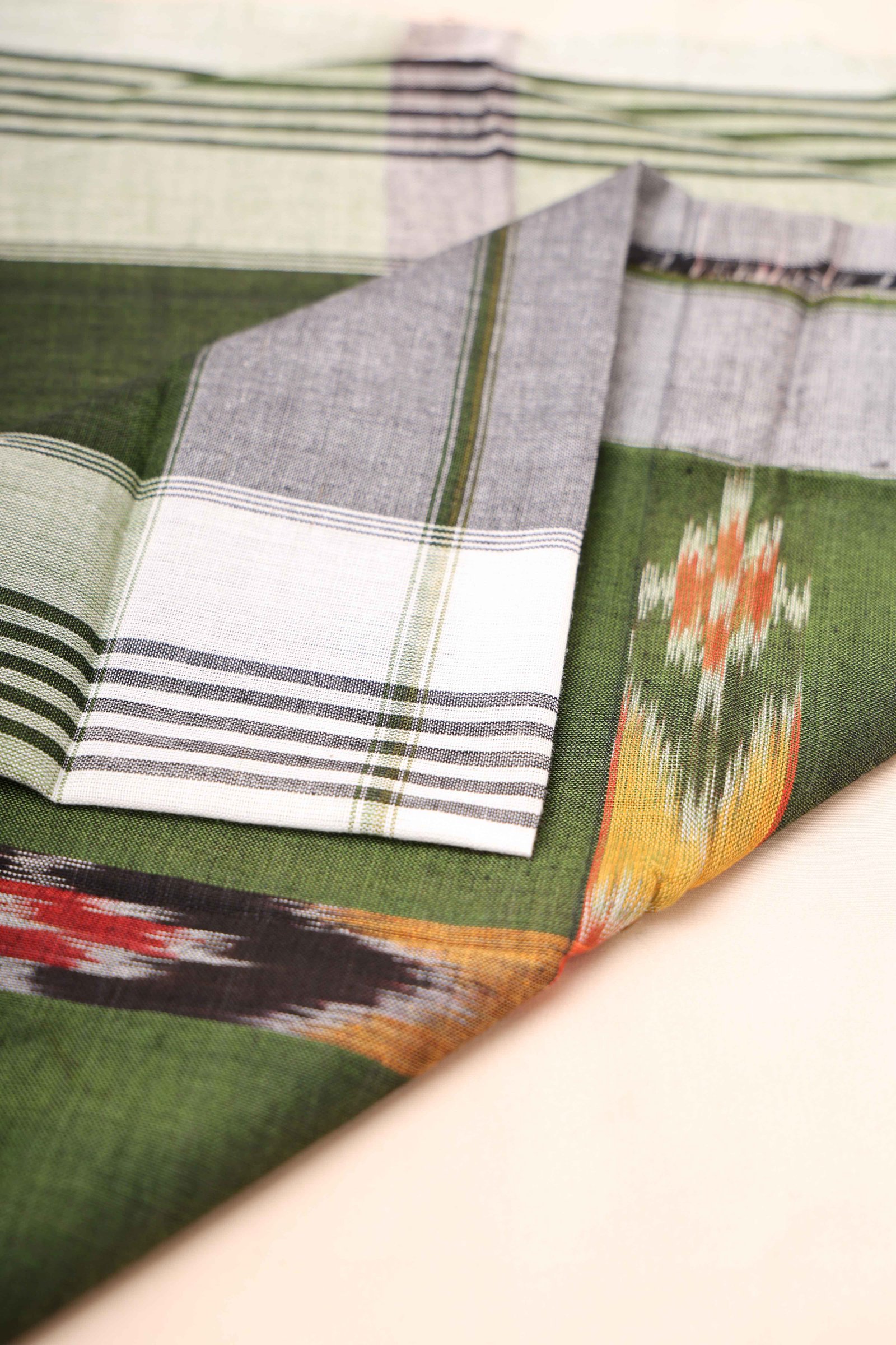 Sambalpuri Cotton Green Handkerchief With White Border