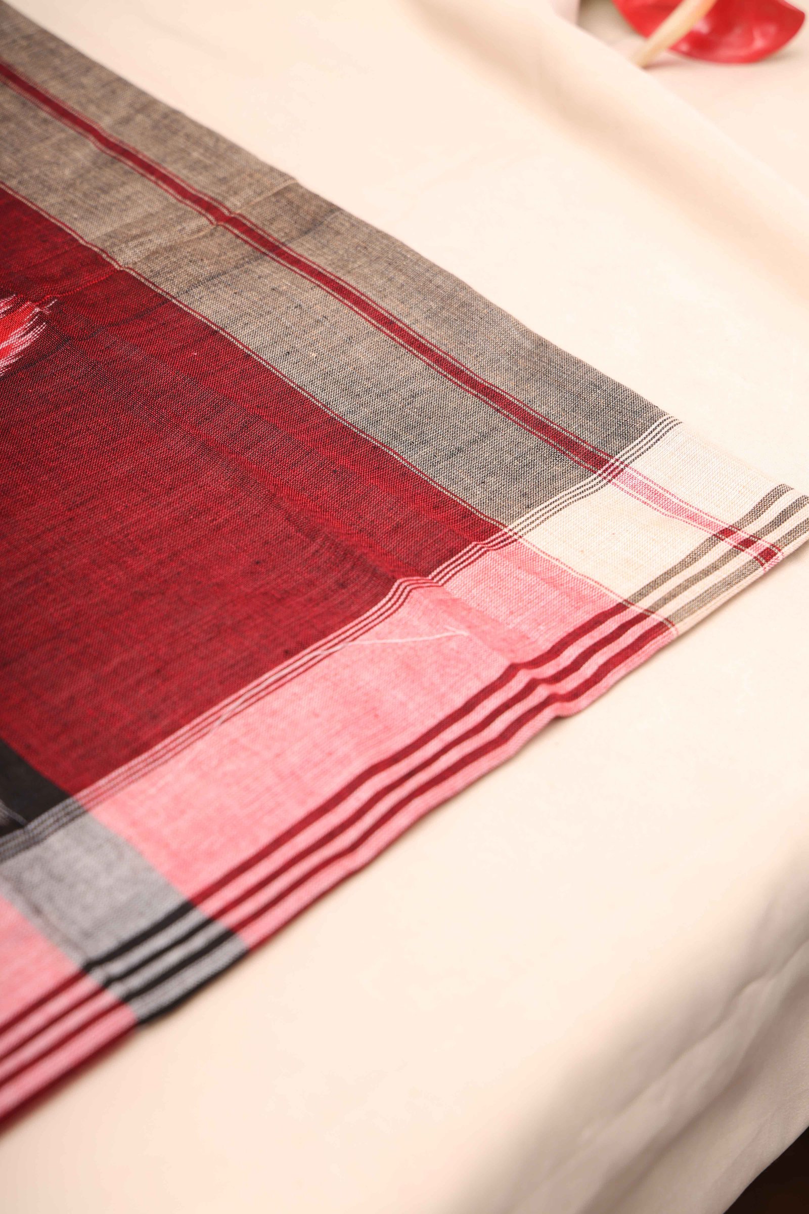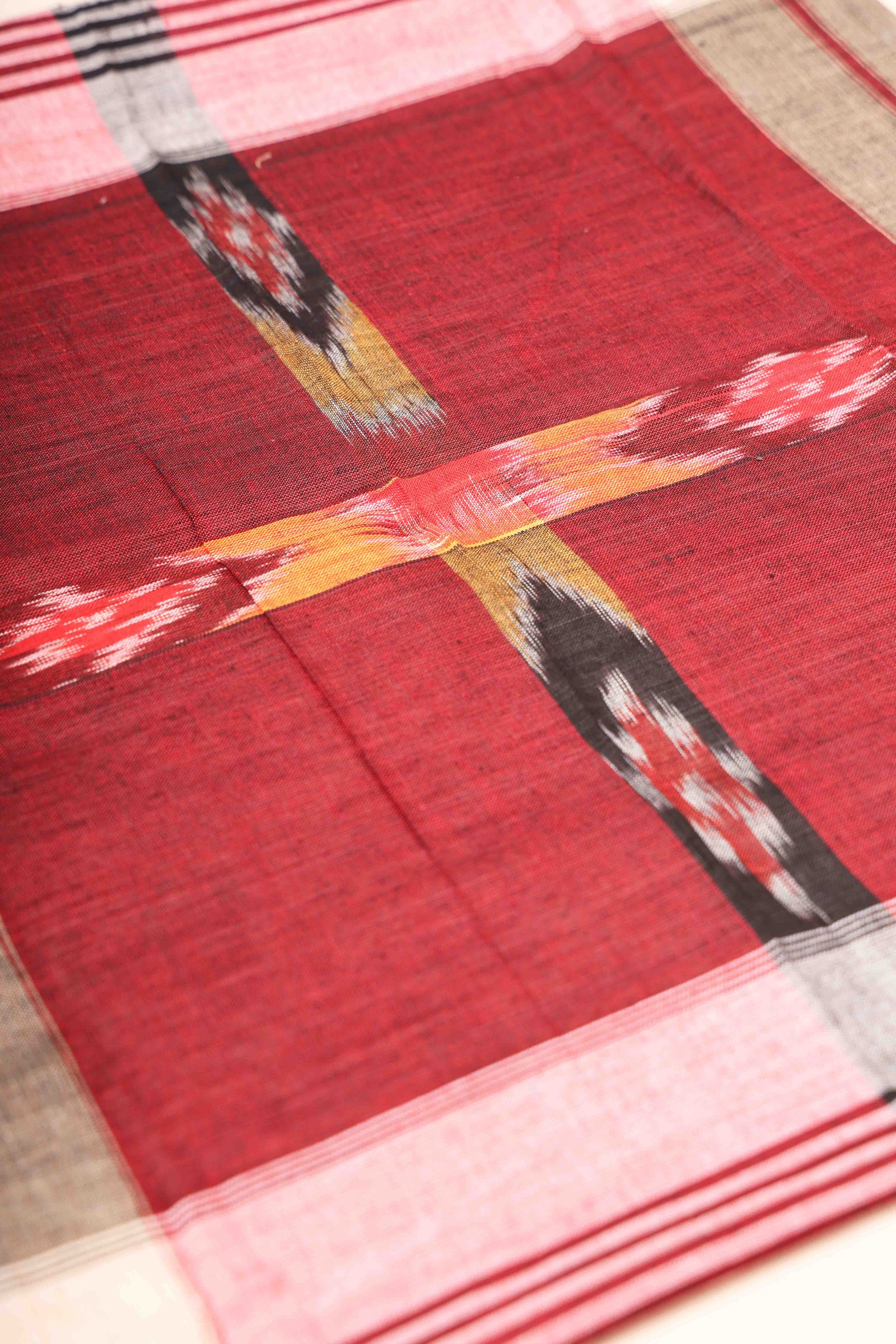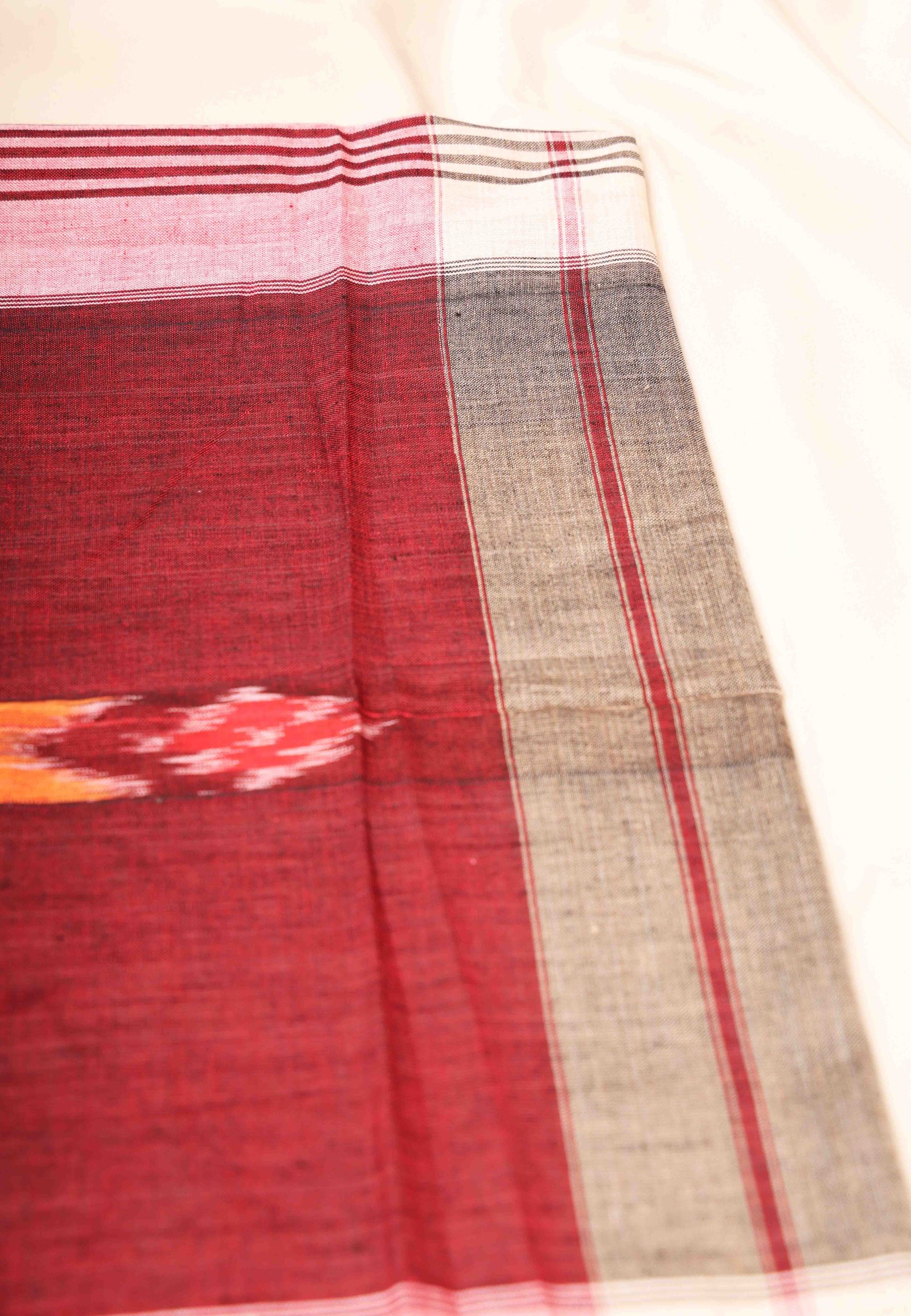 Sambalpuri Cotton Red Handkerchief With White Border