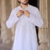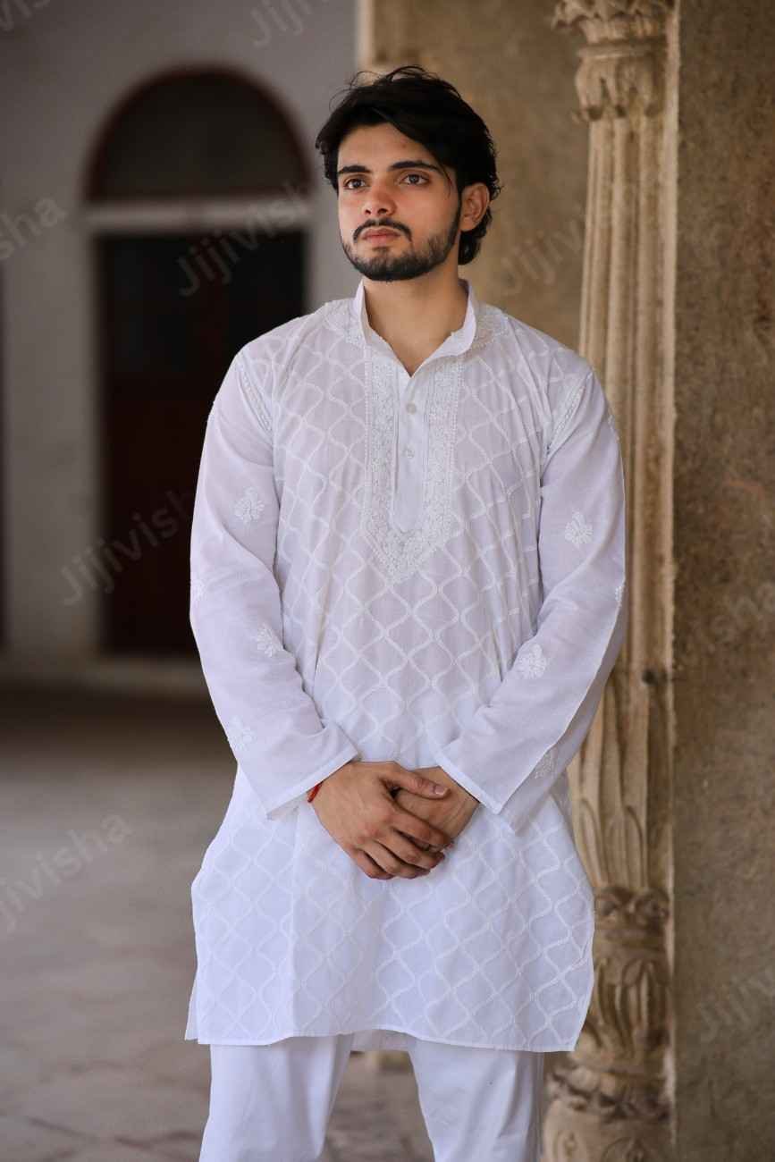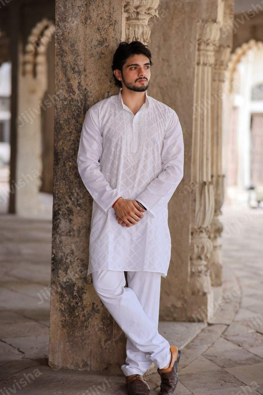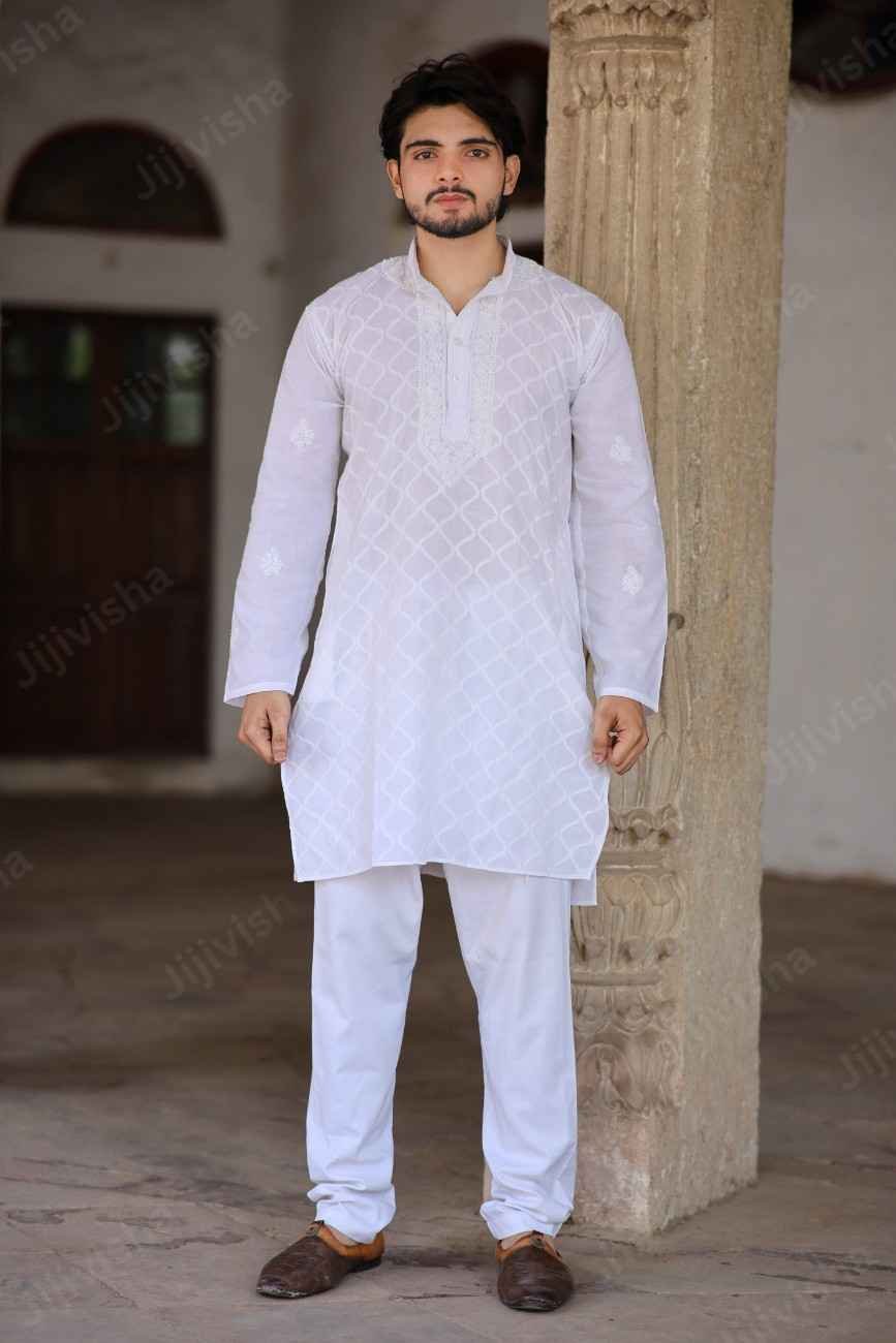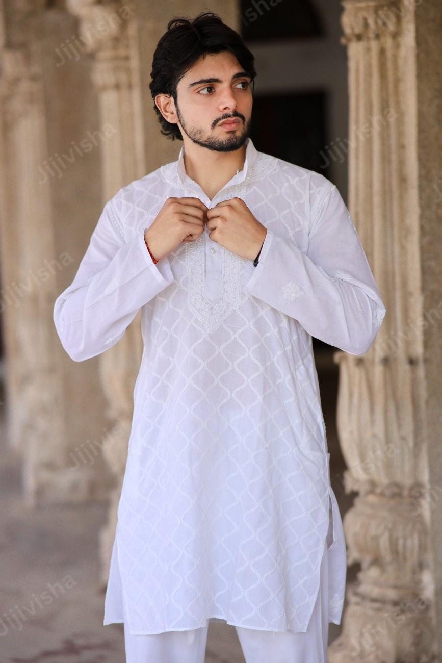 Sophisticated Simplicity: White Chikankari Cotton Kurta for Men