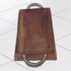 Handcrafted Elegance Wooden Serving Tray with Dokra Handles