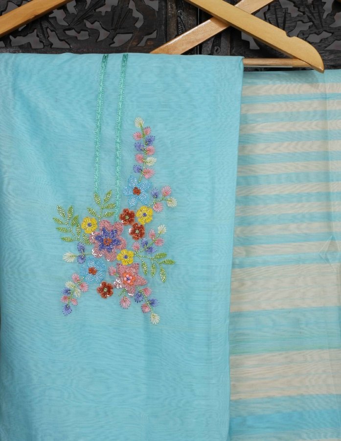Elegant 3-Piece Blue Kurta Set In Chanderi Fabric